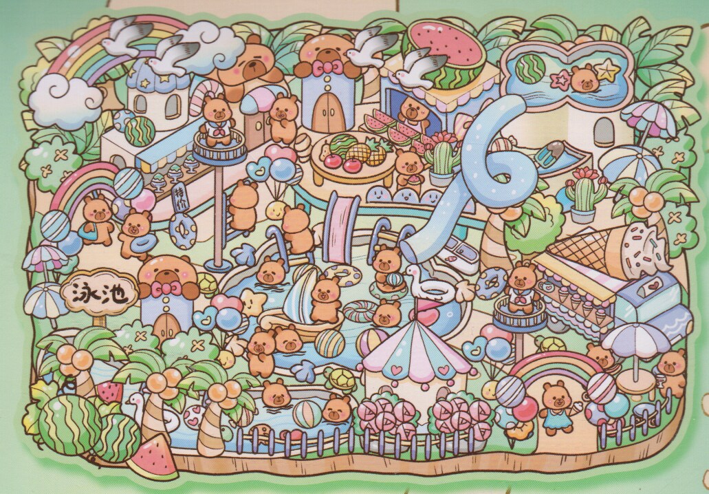 Capybara Fun Park Landscape Stickers, Large Size Isometric DIY, Adorabilities