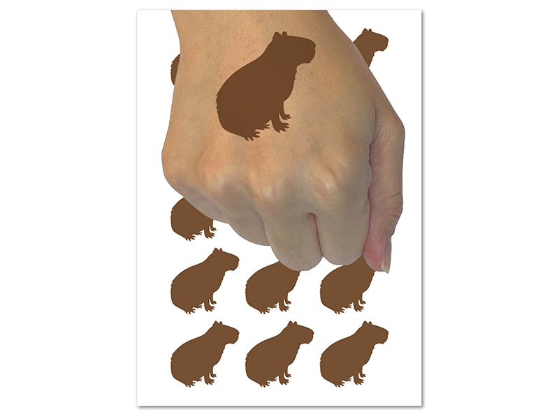 Capybara Rodent Silhouette Temporary Tattoo Water Resistant Fake Body Art Set Collection (1 Sheet)