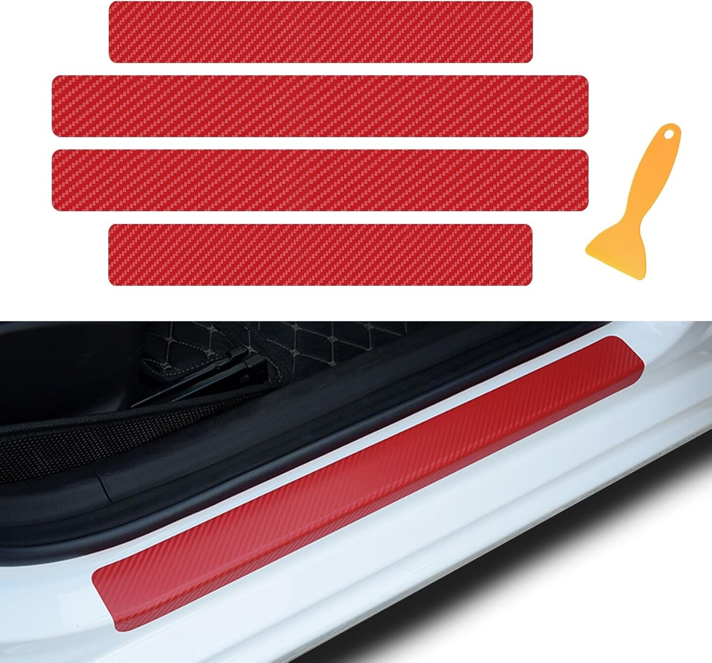 Carbon Fiber Door Sill Protectors Front Vinyl Wrap Stickers
