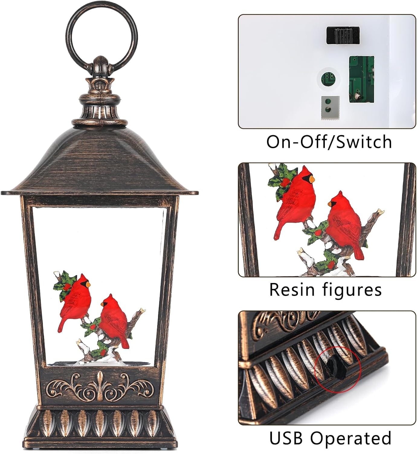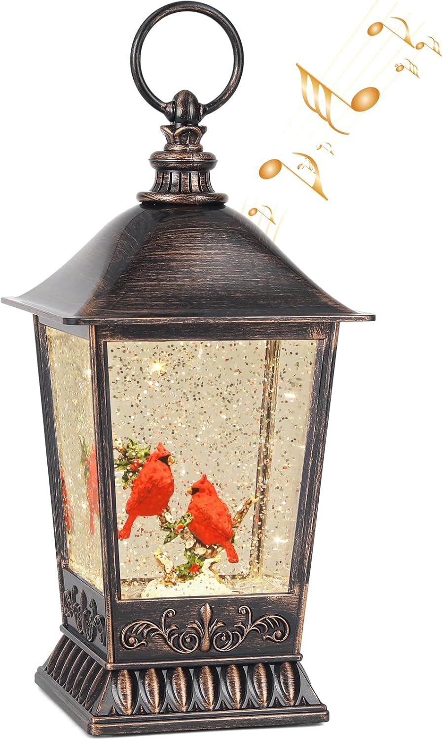 Cardinal Christmas Snow Globe, 11 Inch Musical Snow Globe Lantern, 6H Timer Lighted Christmas Snow Lantern, USB and Battery Operated Lantern, Christmas Decoration for Holiday Season Home Decor.
