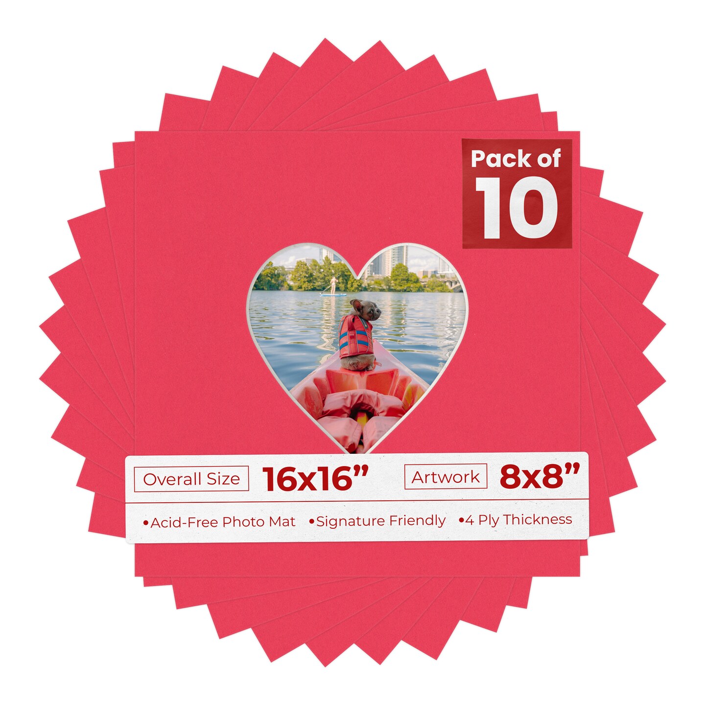 Cardinal Red Mat Board for 16x16 Frames - Heart Opening for 8x8 Photos