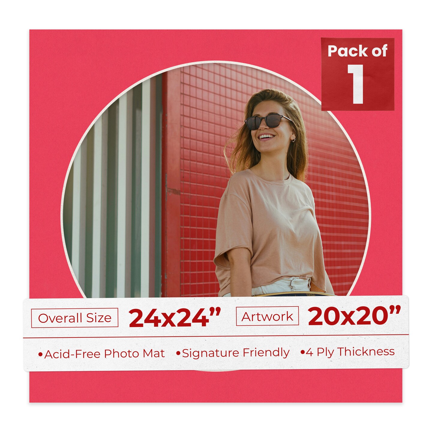 Cardinal Red Mat Board for 24x24 Frames - Circle Opening for 20x20 Photos
