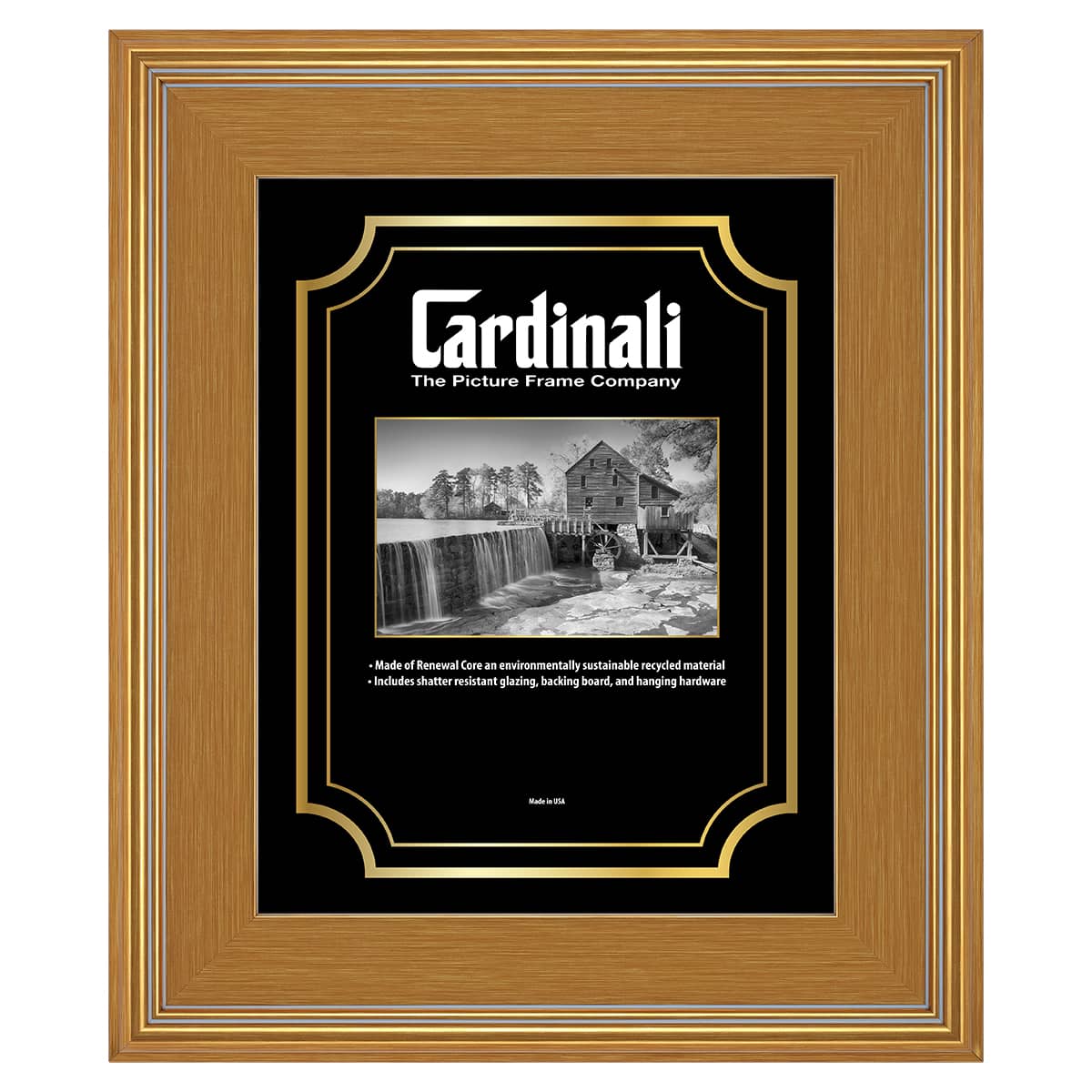 Cardinali Plein Air, Gold 12x16" Picture Frame with Acrylic Glazing & Cardboard Backing, for Photography or Canvas Frame, 3 Wide Moulding, 1/2 Rabbet Depth, D-Ring Hangers Included