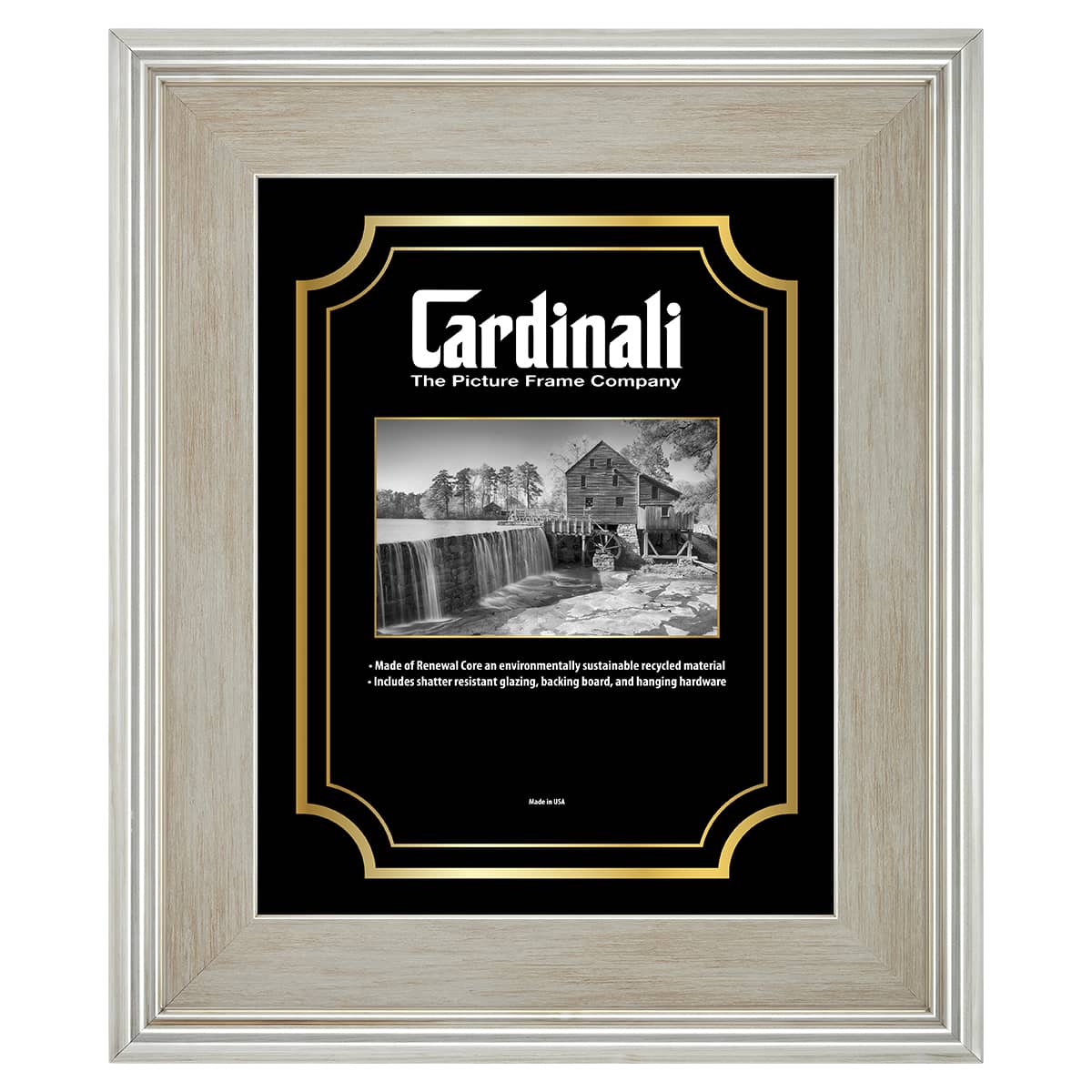 Cardinali Plein Air, Silver 9x12" Picture Frame with Acrylic Glazing & Cardboard Backing, for Photography or Canvas Frame, 3 Wide Moulding, 1/2 Rabbet Depth, D-Ring Hangers Included