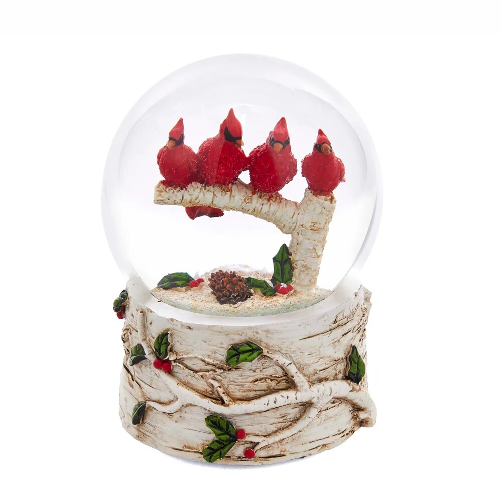 Cardinals With Tree Musical Water Globe - 100mm