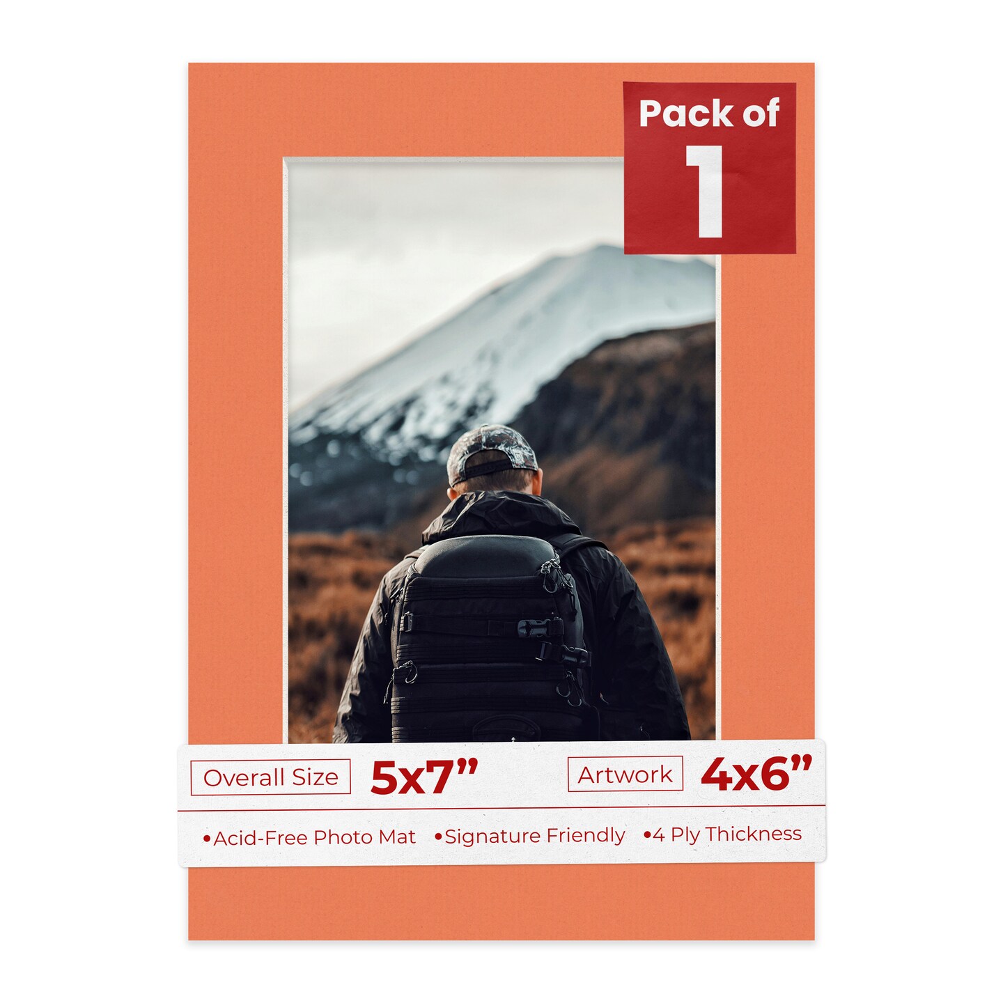 Carnelian Orange Mat Board for 5x7 Frames - Fits 4x6 Photos