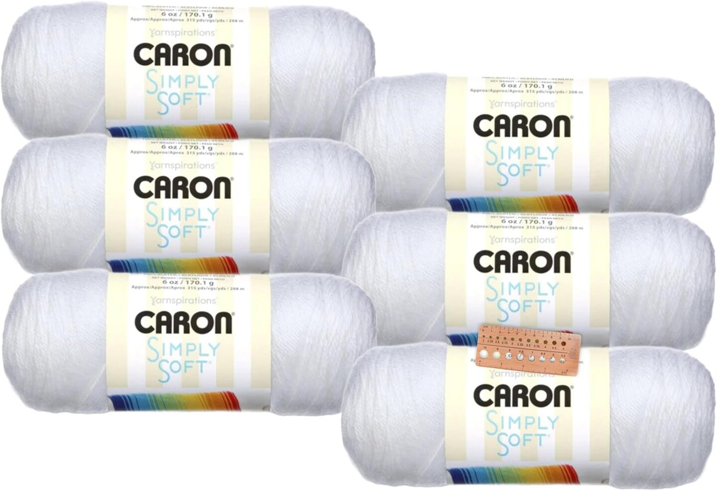 Caron Simply Soft Yarn – 6-Pack Bundle, 6 oz / 170 g Each, 315 Yards, White Worsted Weight Yarn with Needle Gauge for Knitting & Crochet
