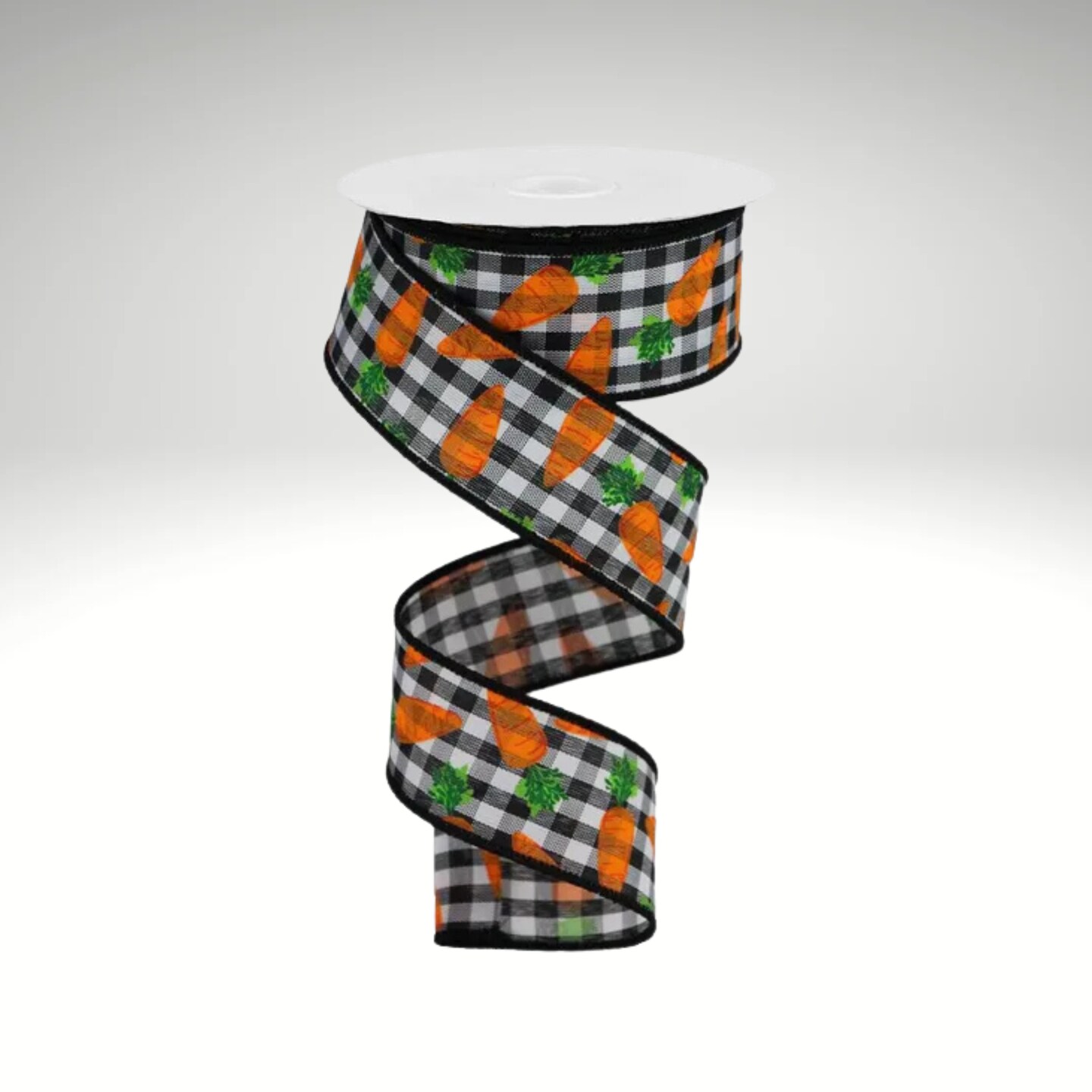 Carrots on Gingham Check Wired Easter Ribbon – 1.5"x10yd-RGA1590X6