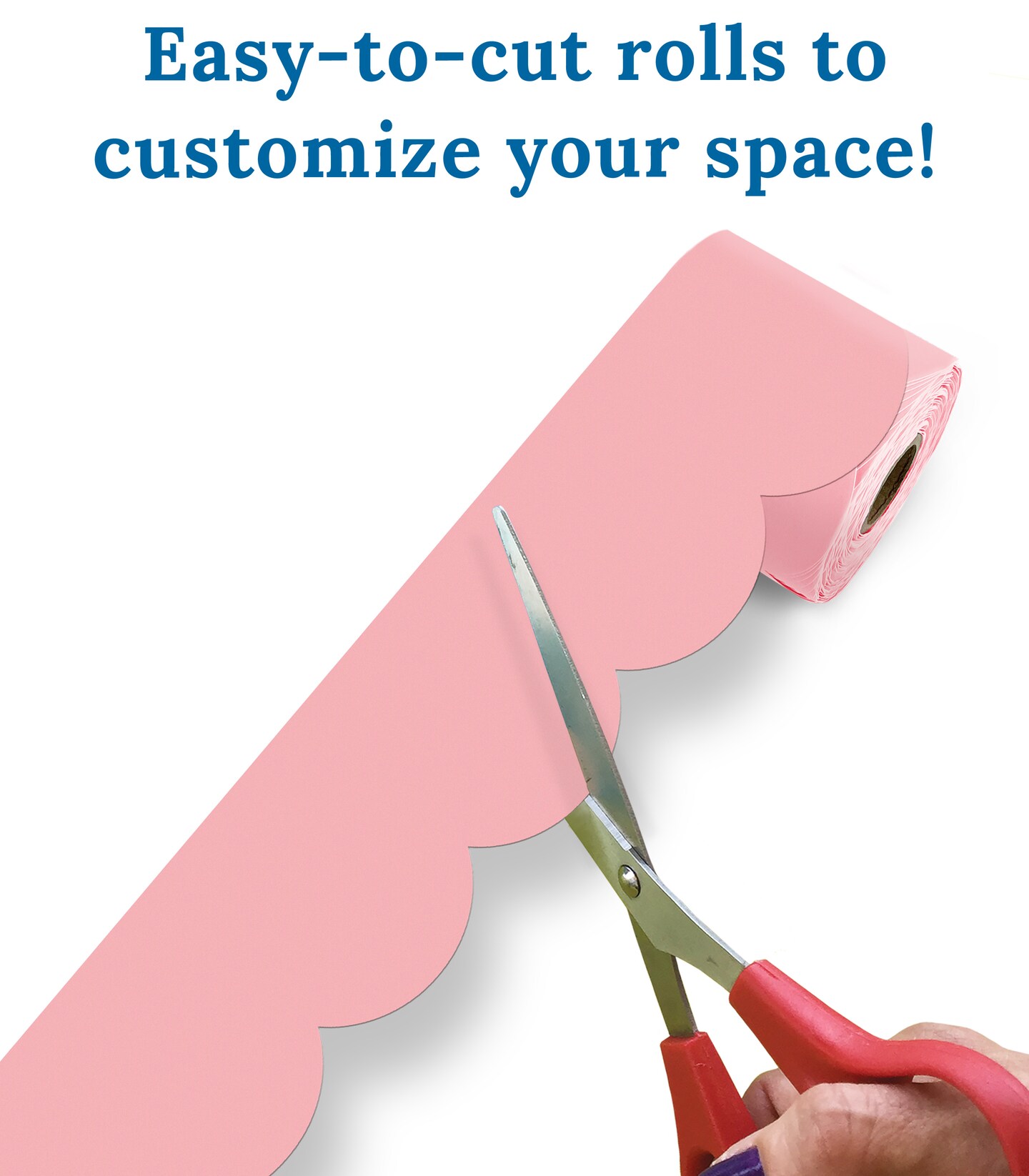 Carson Dellosa 65Ft of Dusty Rose Bulletin Board Borders, 1 Roll of Pink Scalloped Trim for Rolling Whiteboard, Cork and Posterboard, Party, Easter, Spring Decorations, and Classroom Decor