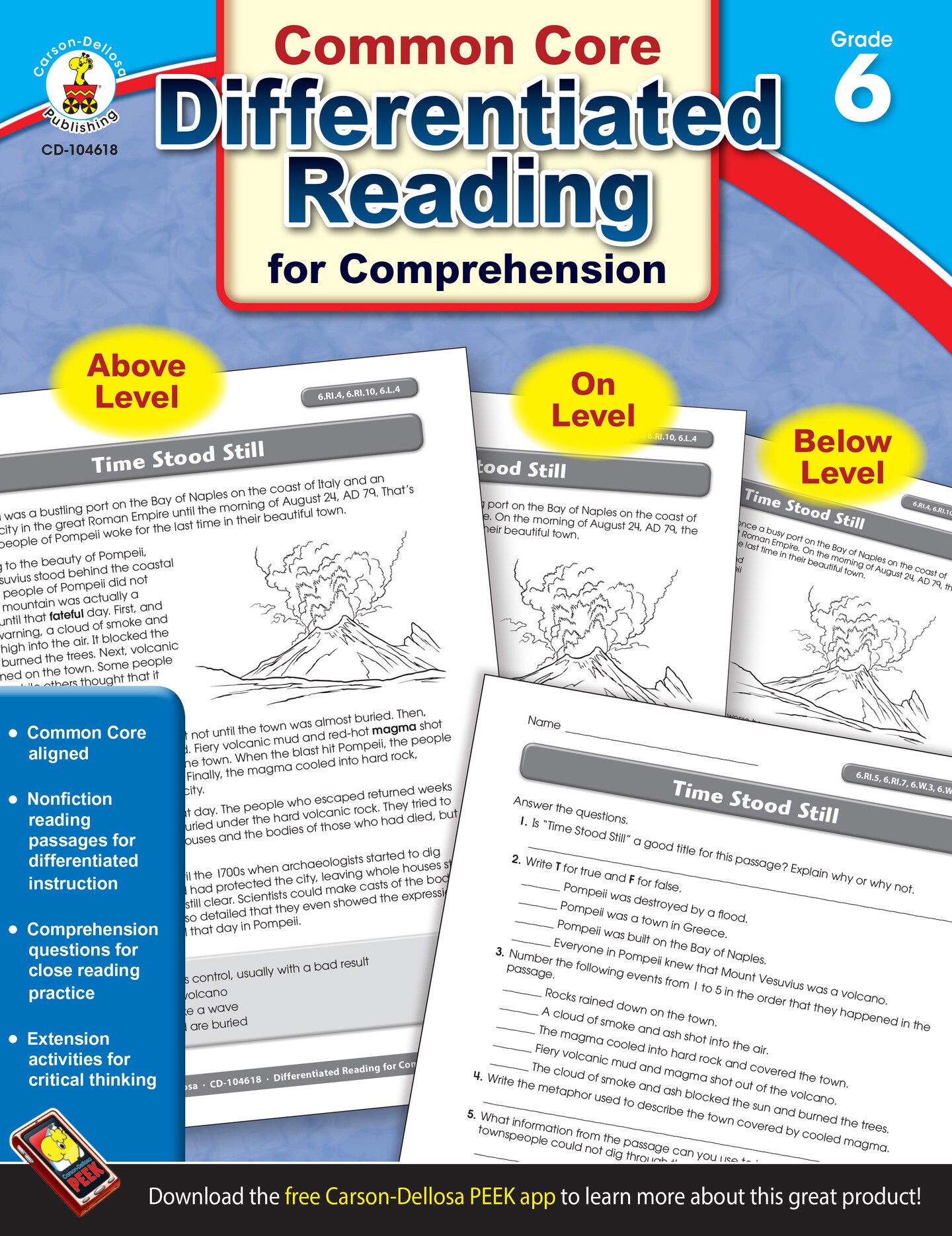Carson Dellosa Differentiated Reading for Comprehension, Grade 6 Resource Book