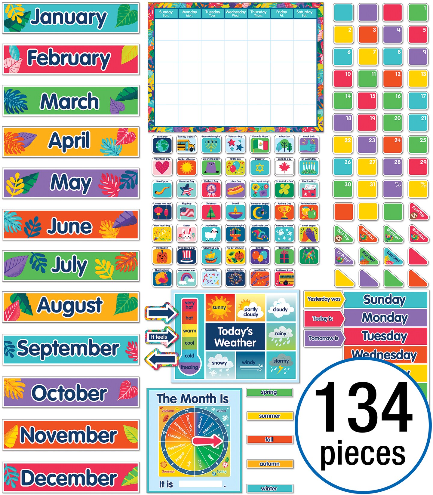 Carson Dellosa One World Calendar Bulletin Board Set, Monthly Wall Calendar With Numbers and Birthdays Cover Ups, Colorful Decor, Seasons, Weather, and Days of the Week Chart, Classroom Decor (134 pc)