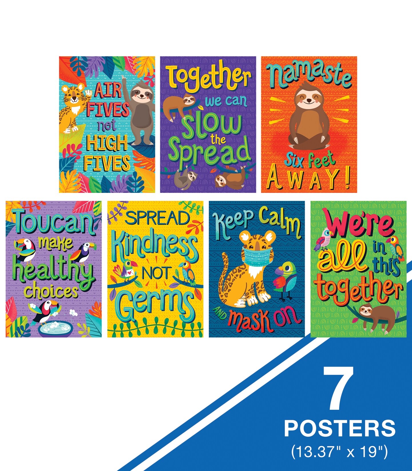 Carson Dellosa One World Social Distancing 7-Piece Posters, Motivational 8.5" x 11" Tropical Wall Art With Positive Affirmations for Bulletin Board, Door, Boho Decor, Classroom Must Haves
