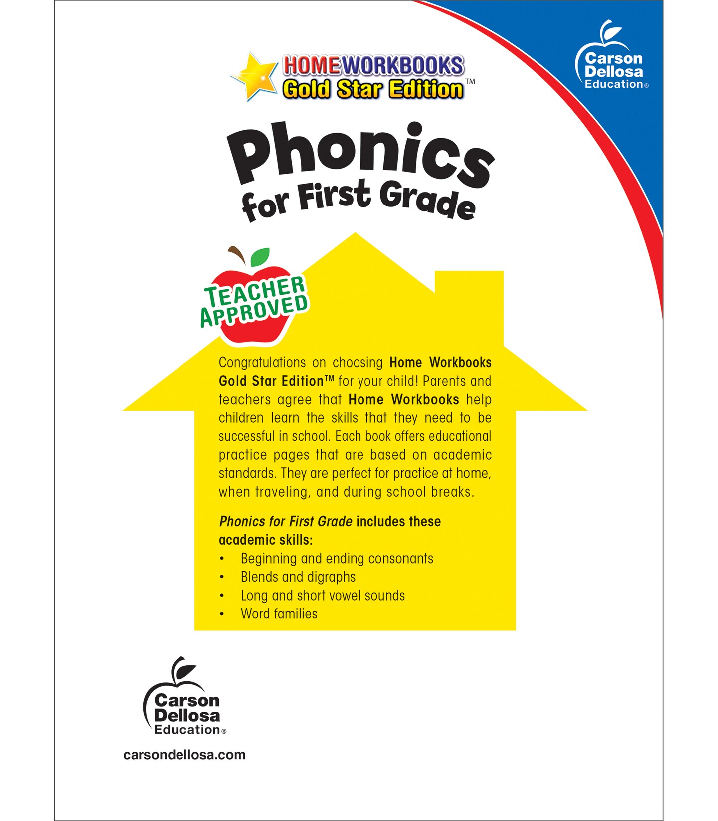 Carson Dellosa Phonics for First Grade Workbook, Consonants, Blends, Digraphs, Vowels, and Word Families Writing Practice, Language Arts Classroom or Homeschool Curriculum