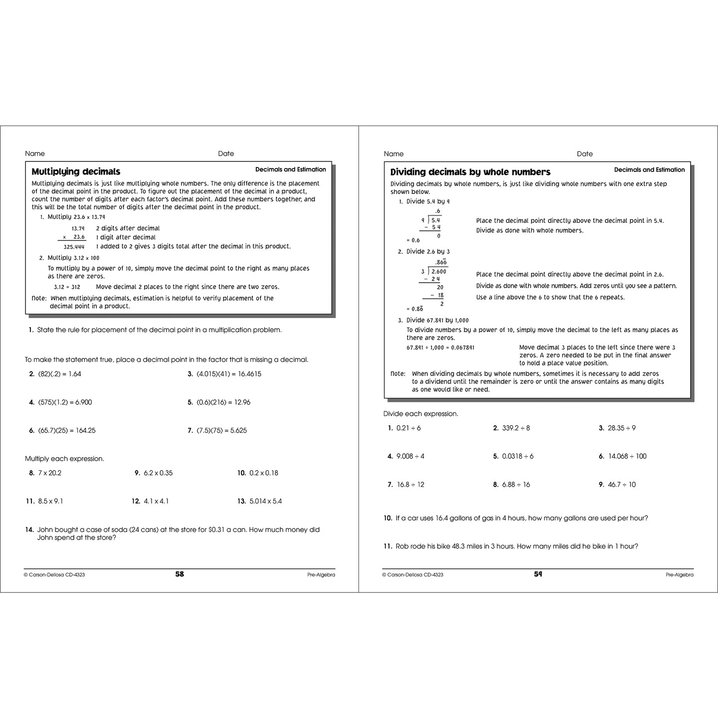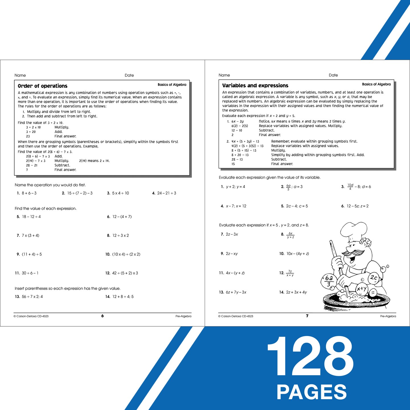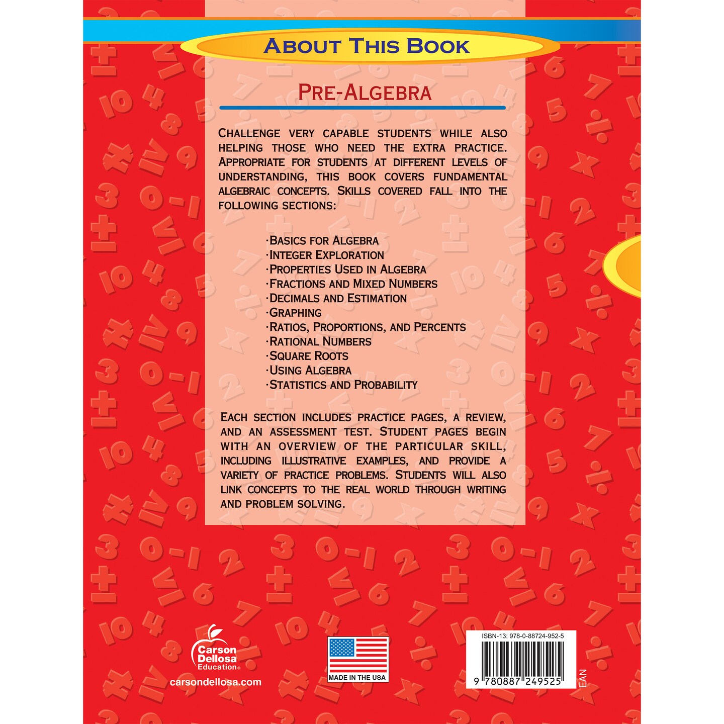 Carson Dellosa Pre Algebra Workbook, Middle School Math Book Covering Integers, Fractions, Decimals, Ratio, Square Root, and More, Mathematics Classroom or Homeschool Curriculum