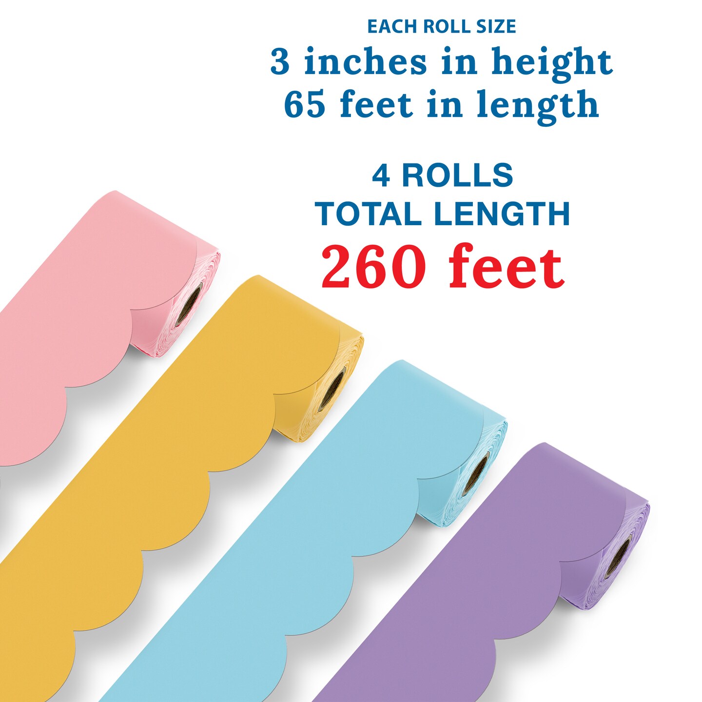 Carson Dellosa Spring Bulletin Board Borders - 260ft Pink, Yellow, Blue, Purple Pastel Classroom Décor, Teacher Supply, School, Office Cork or Whiteboard, Wall, Locker, Party Decoration 4 Pack