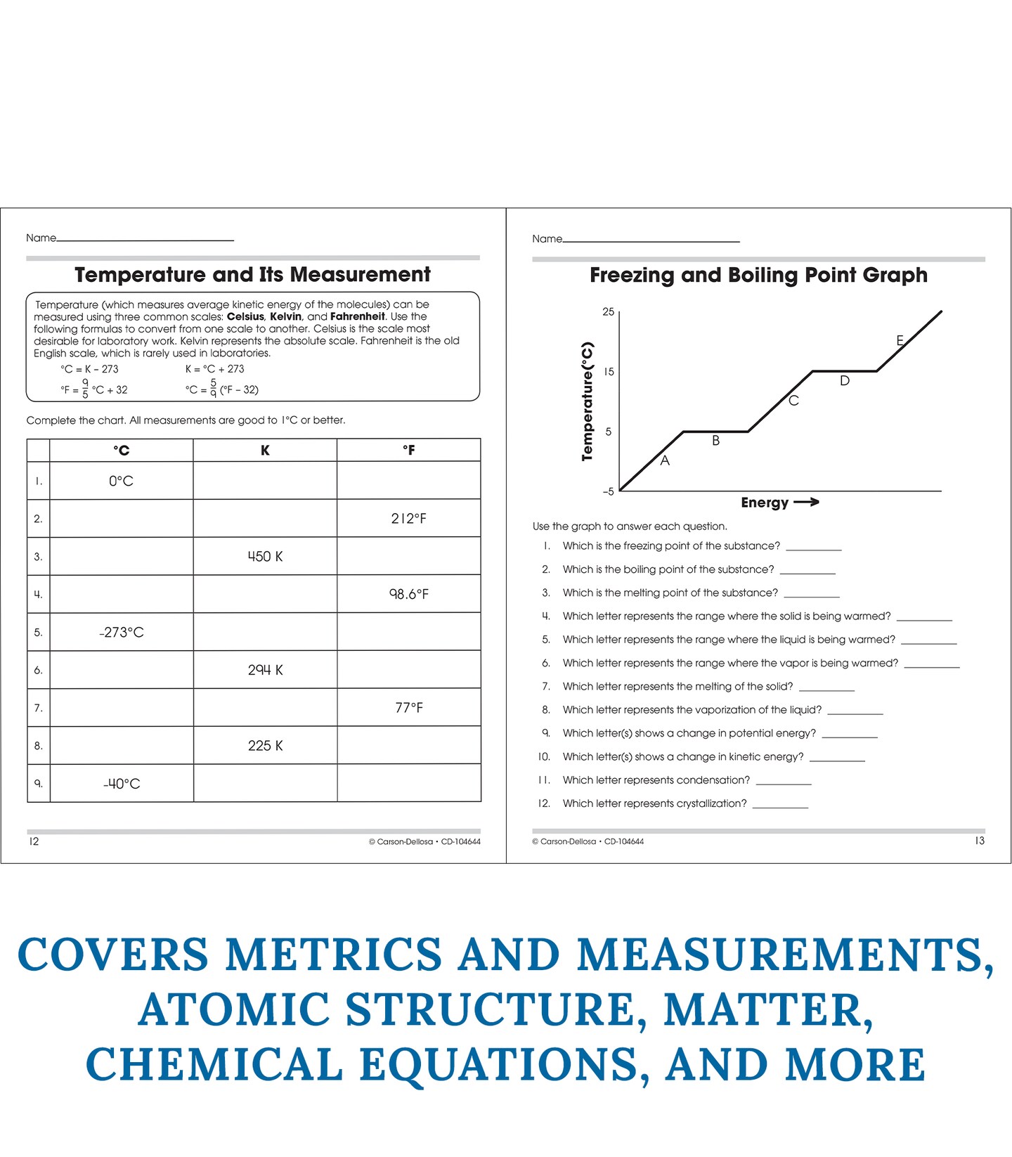 Carson Dellosa The 100 Series Chemistry Workbook, Science Book for Grades 9-12, Periodic Table, Atomic Structure, Scientific Notation, and More, Classroom or Homeschool Curriculum