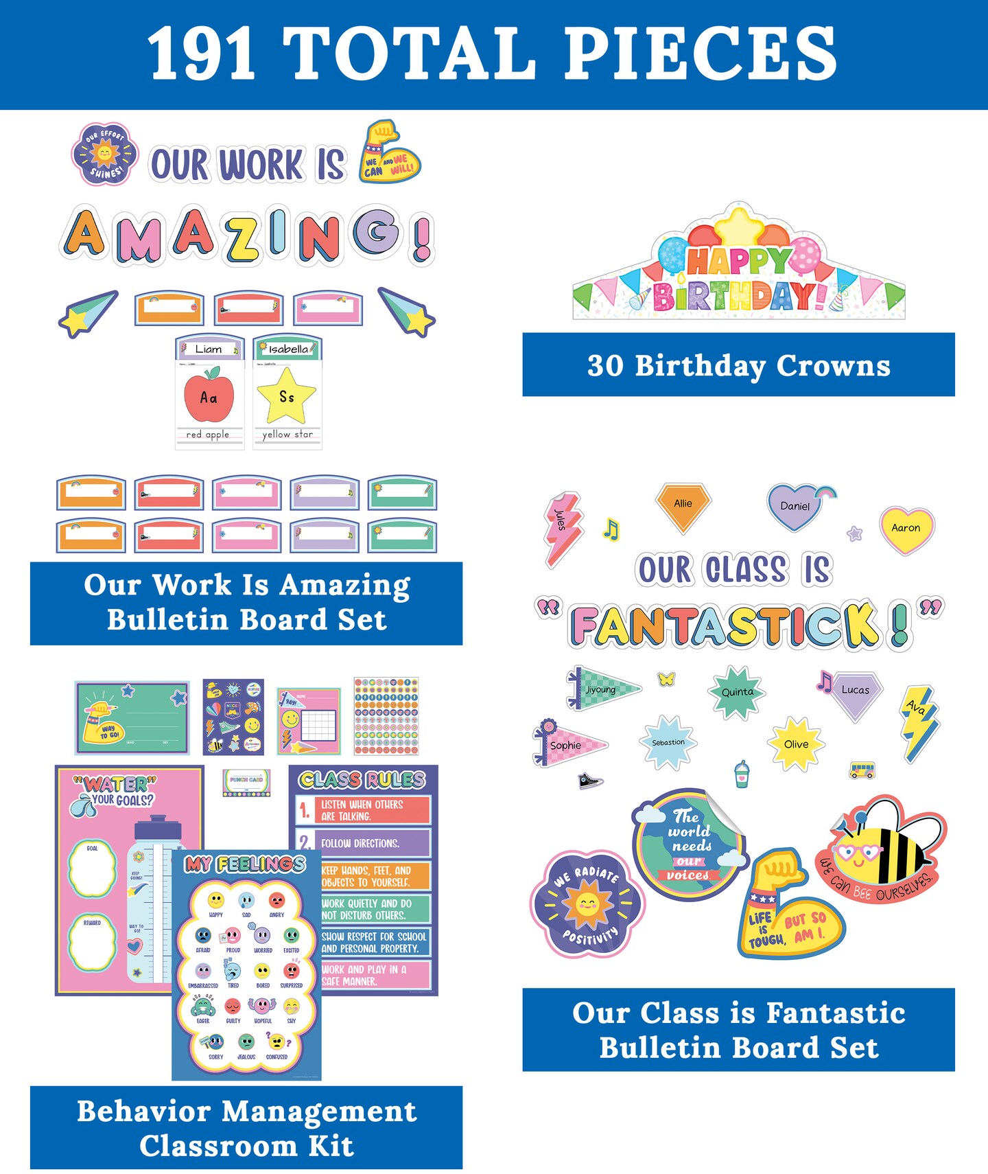 Carson Dellosa We Stick Together 261Pc Classroom Management Set, Colorful Birthday Crowns for Classroom, Motivational Bulletin Board Sets, Feelings Chart, Stickers, Punch Cards & More School Supplies