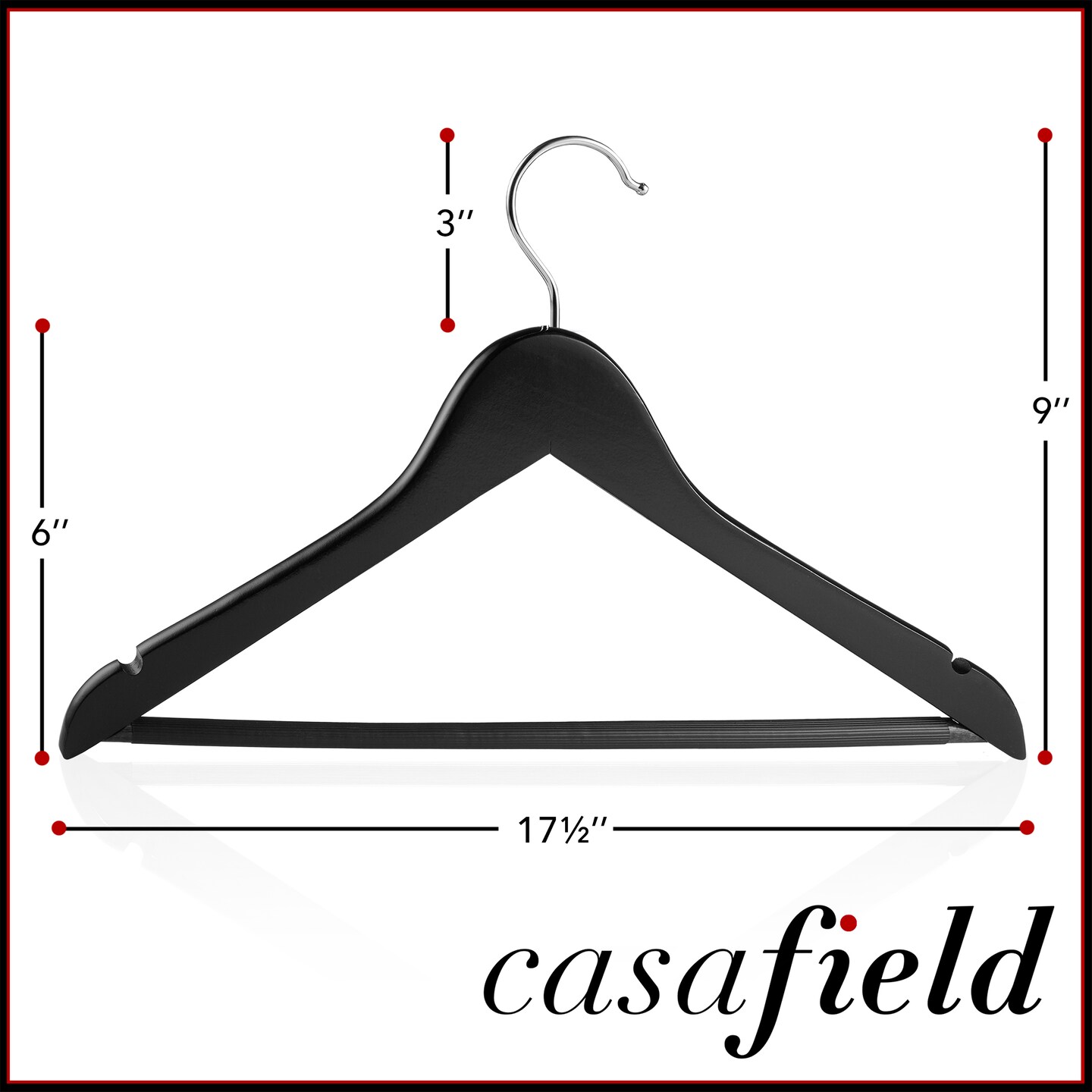Casafield - 10 Wooden Suit Hangers - Premium Lotus Wood with Notches & Chrome Swivel Hook for Dress Clothes, Coats, Jackets, Pants, Shirts, Skirts