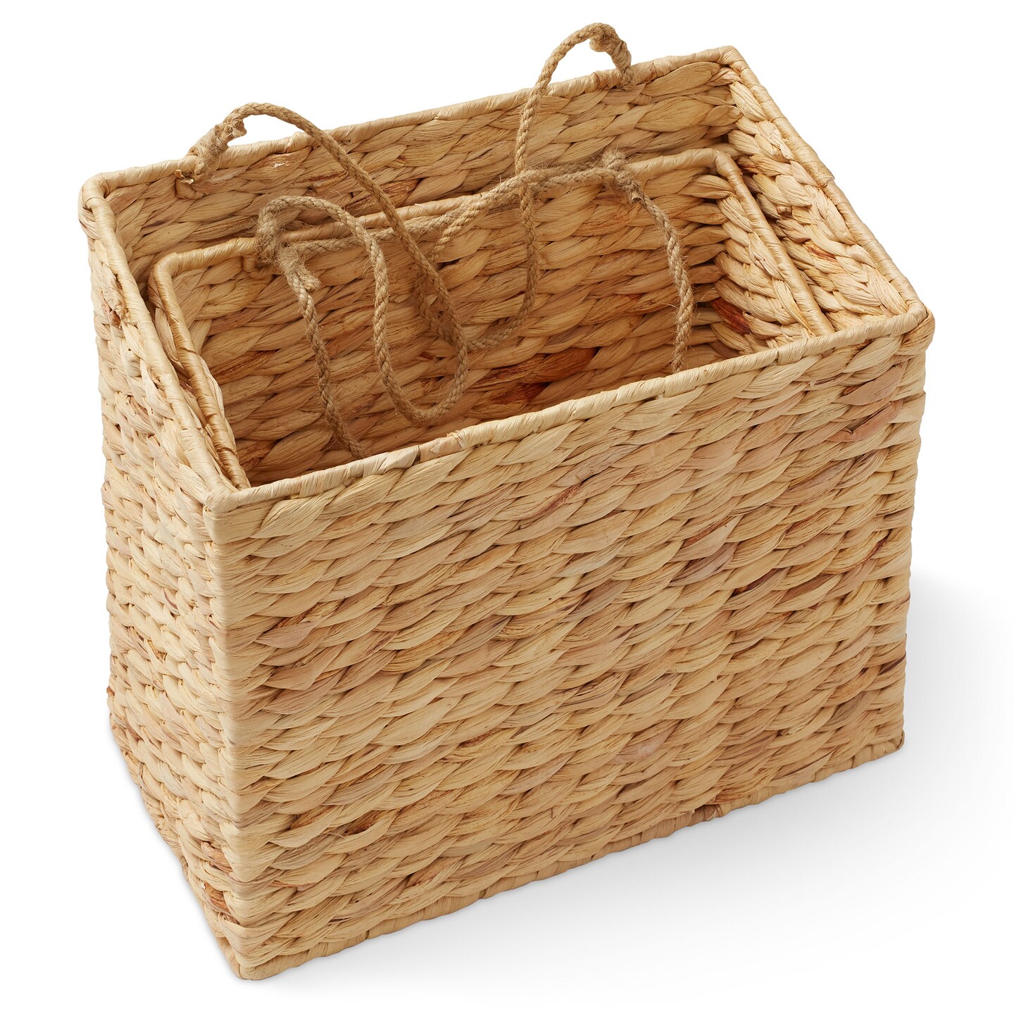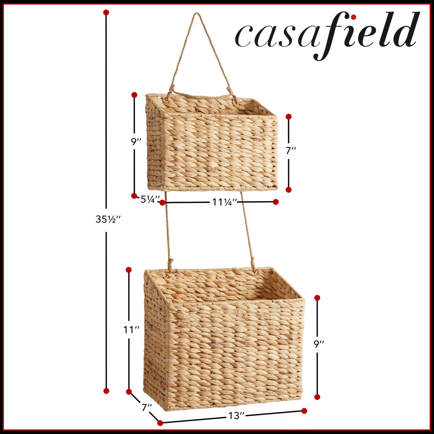 Casafield 2-Tier Hanging Storage Basket Set, Natural Boho Water Hyacinth Wall Basket Organizer for Kitchen Pantry, Home Office, Entryway, Bathroom
