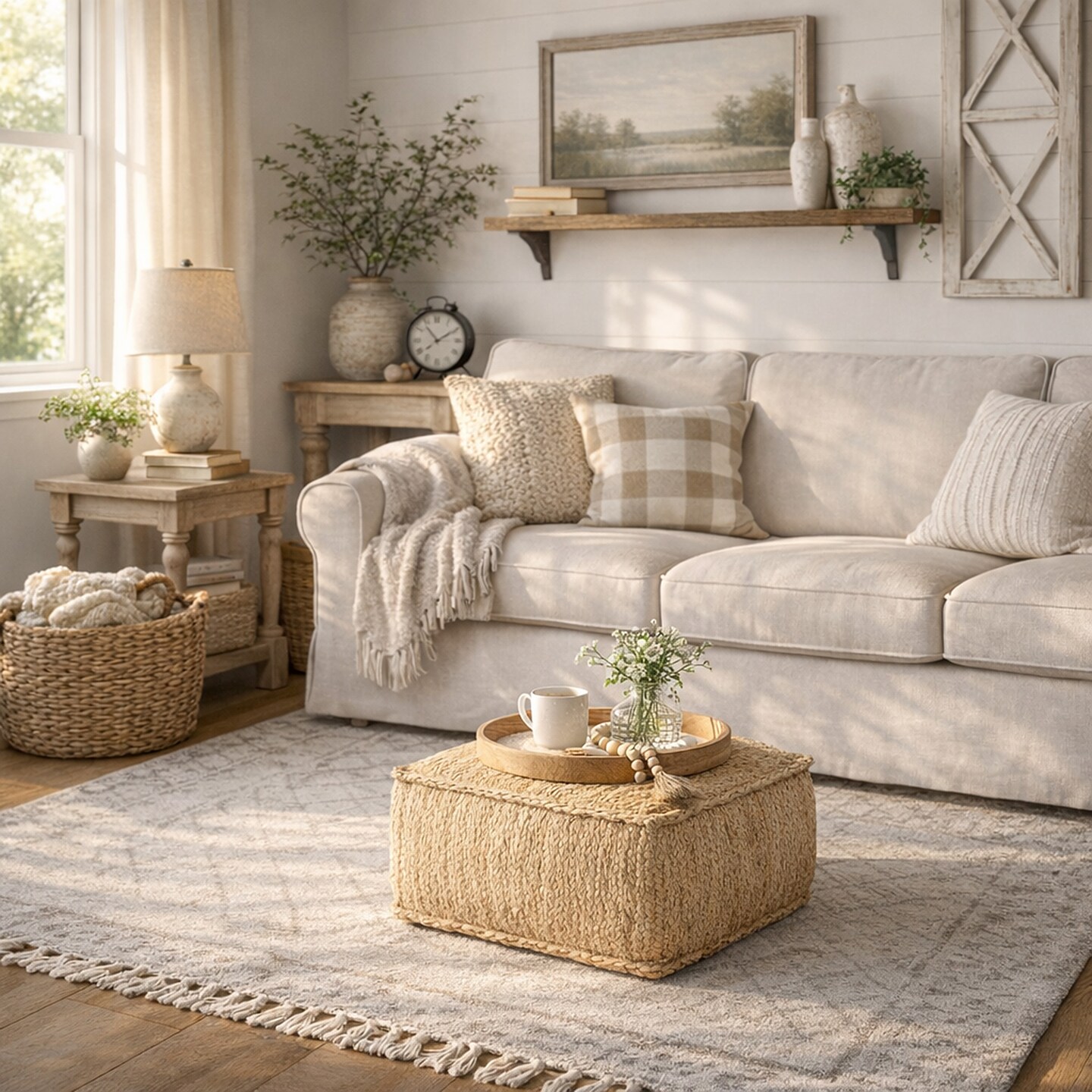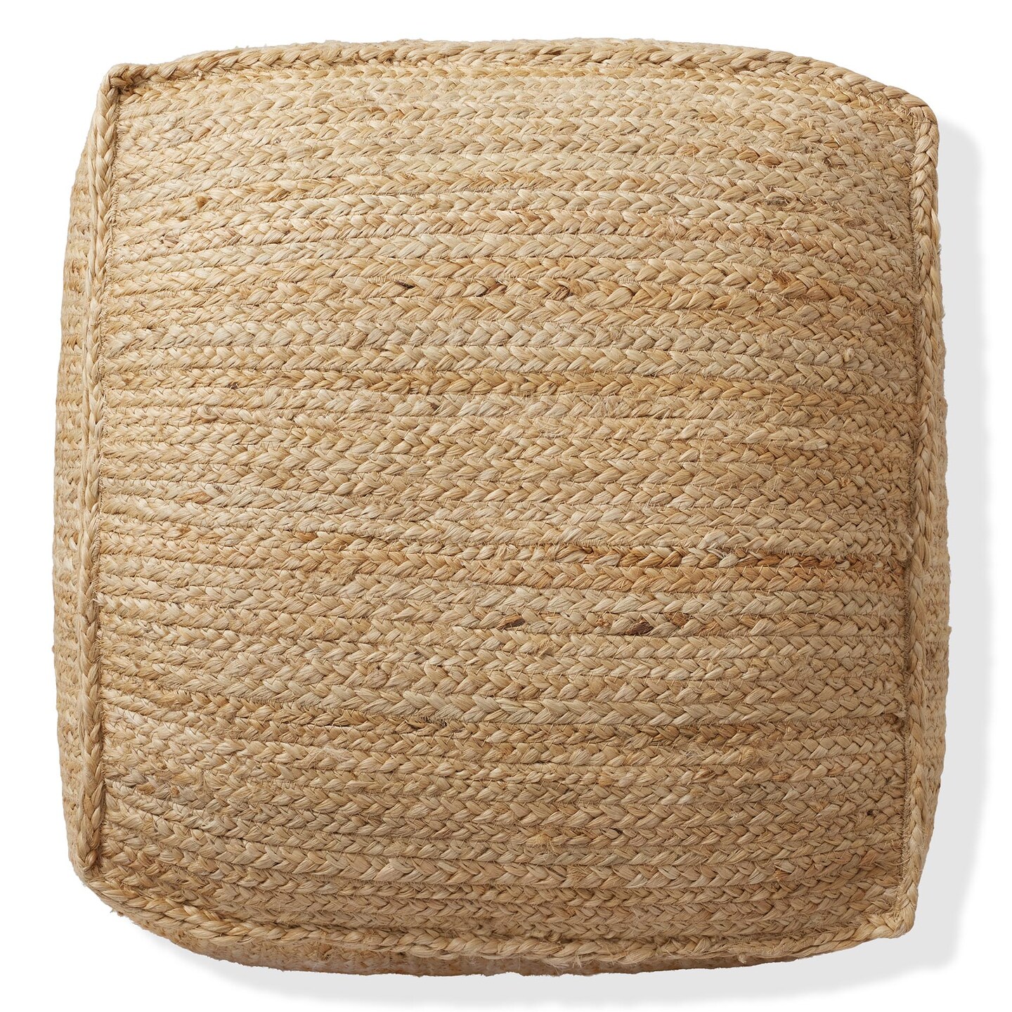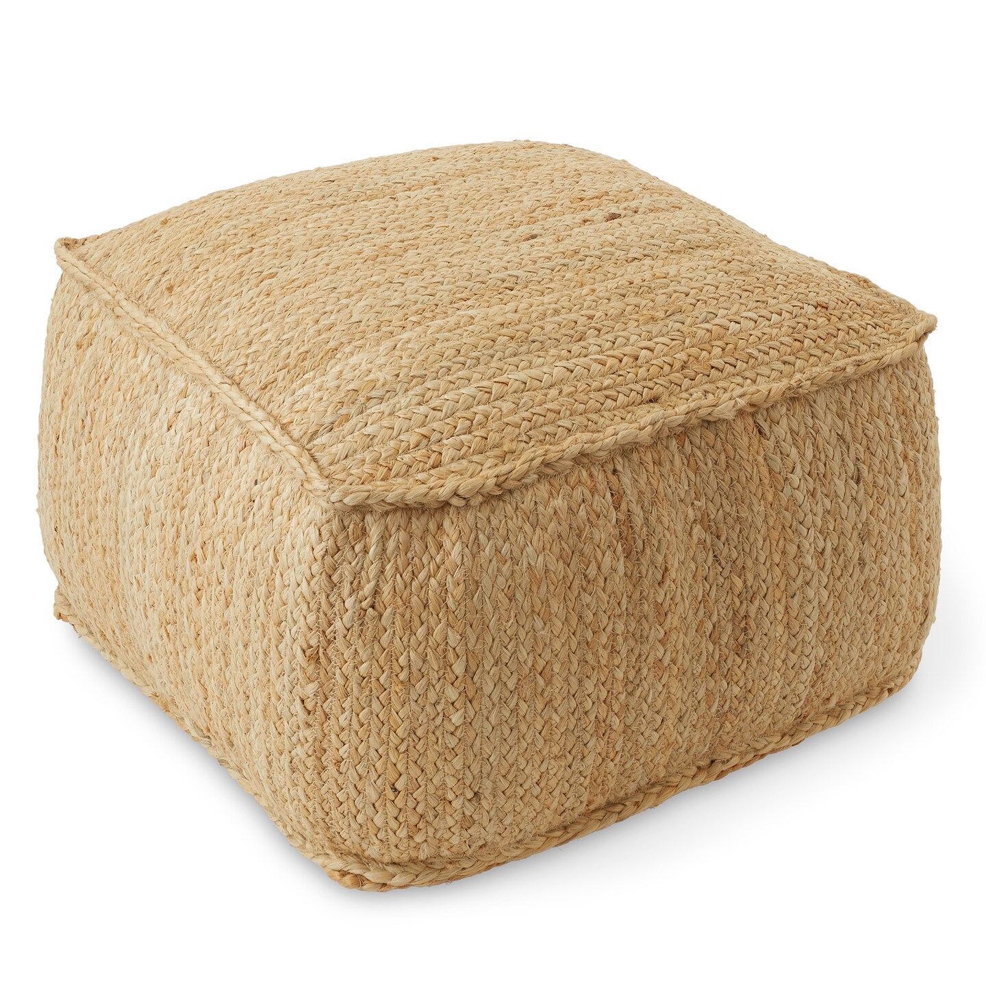 Casafield Braided Jute Pouf, Large Pouf Ottoman, 22" W x 22" D x 14" H Woven Jute Footrest, Decorative Indoor Boho Home Accent for Living Room