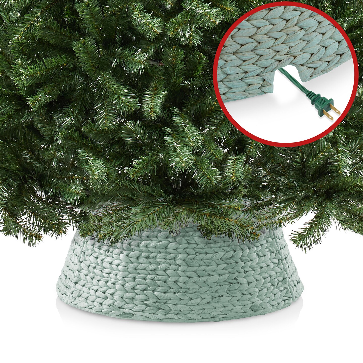 Casafield Christmas Tree Collar, Woven Water Hyacinth Tree Base Cover with Cord Cut Out