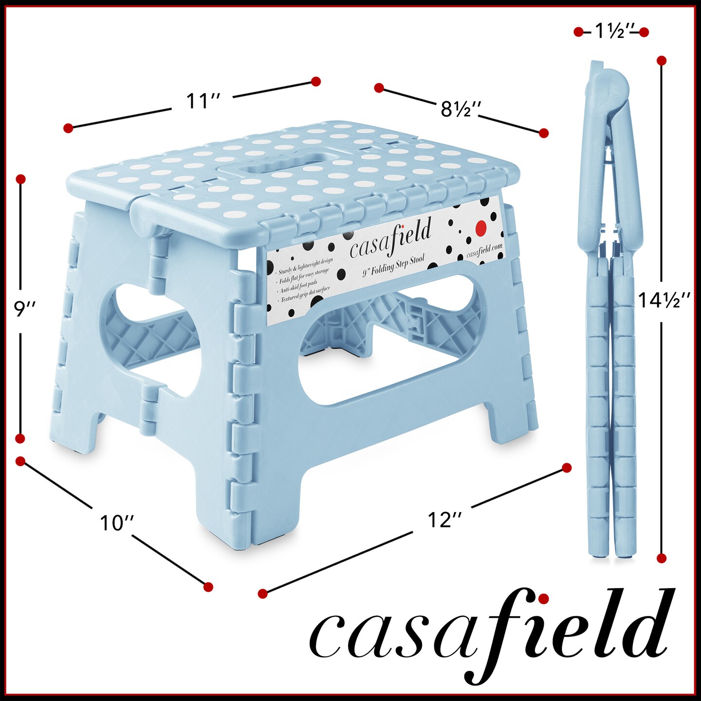 Casafield Folding Step Stools with Handle (Set of 2) - Portable Collapsible Small Plastic Foot Stool - Use in the Kitchen, Bathroom and Bedroom