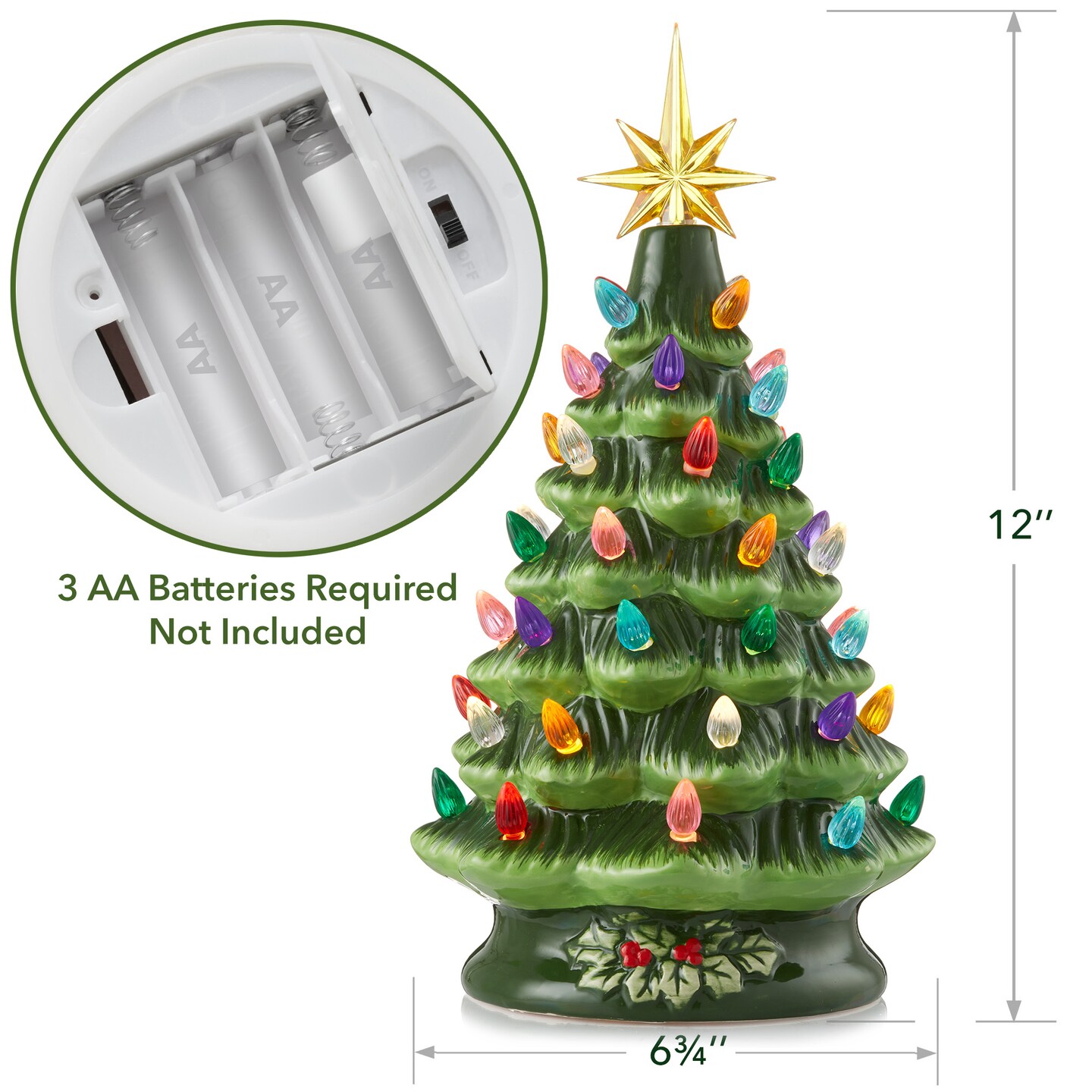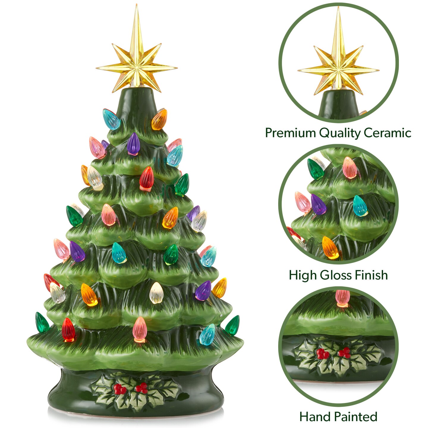 Casafield Hand Painted Ceramic Christmas Tree, 12-Inch Pre-Lit Tree with 100 Multi Color Lights and 2 Star Toppers