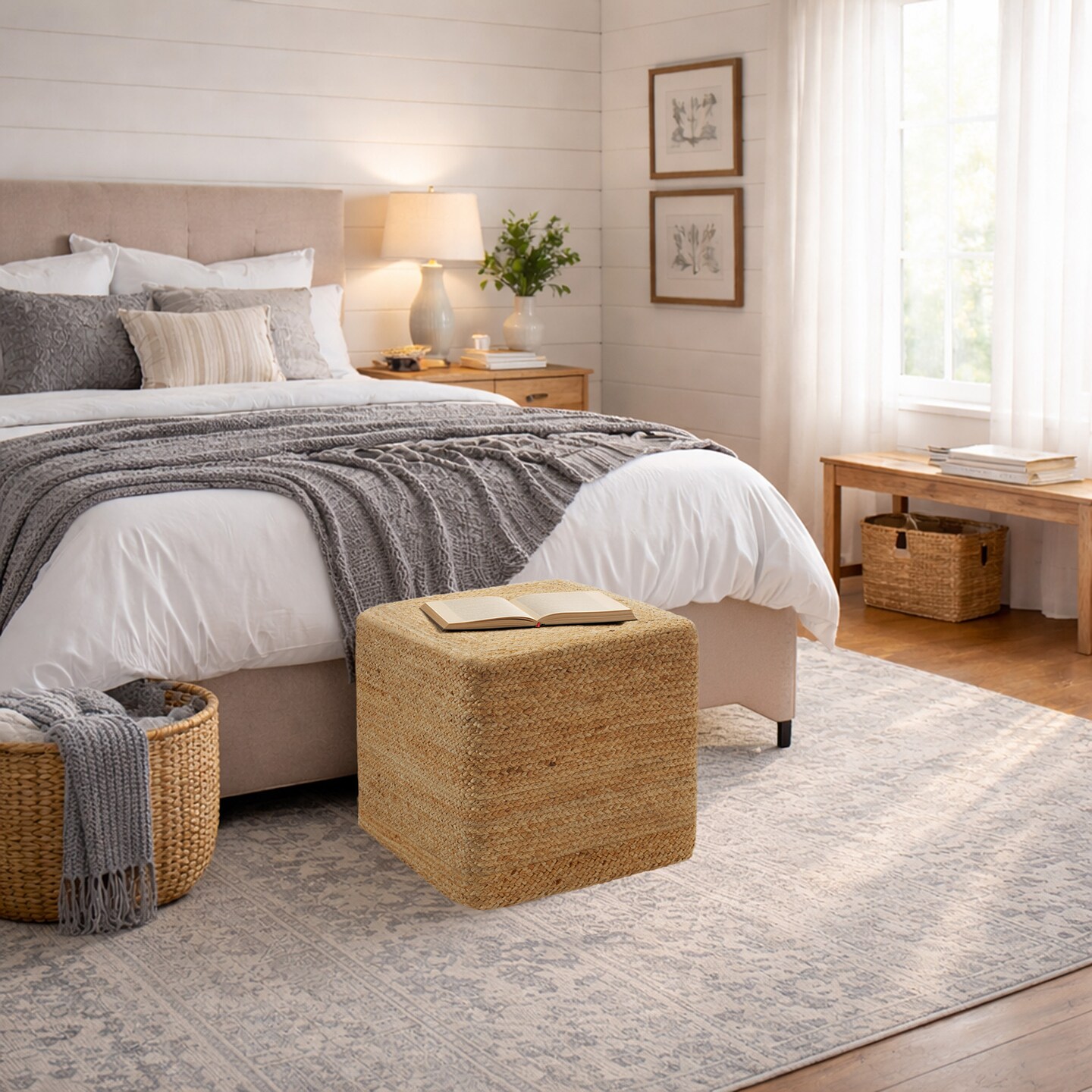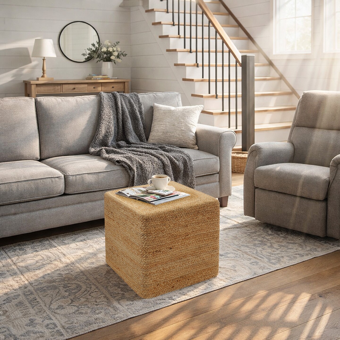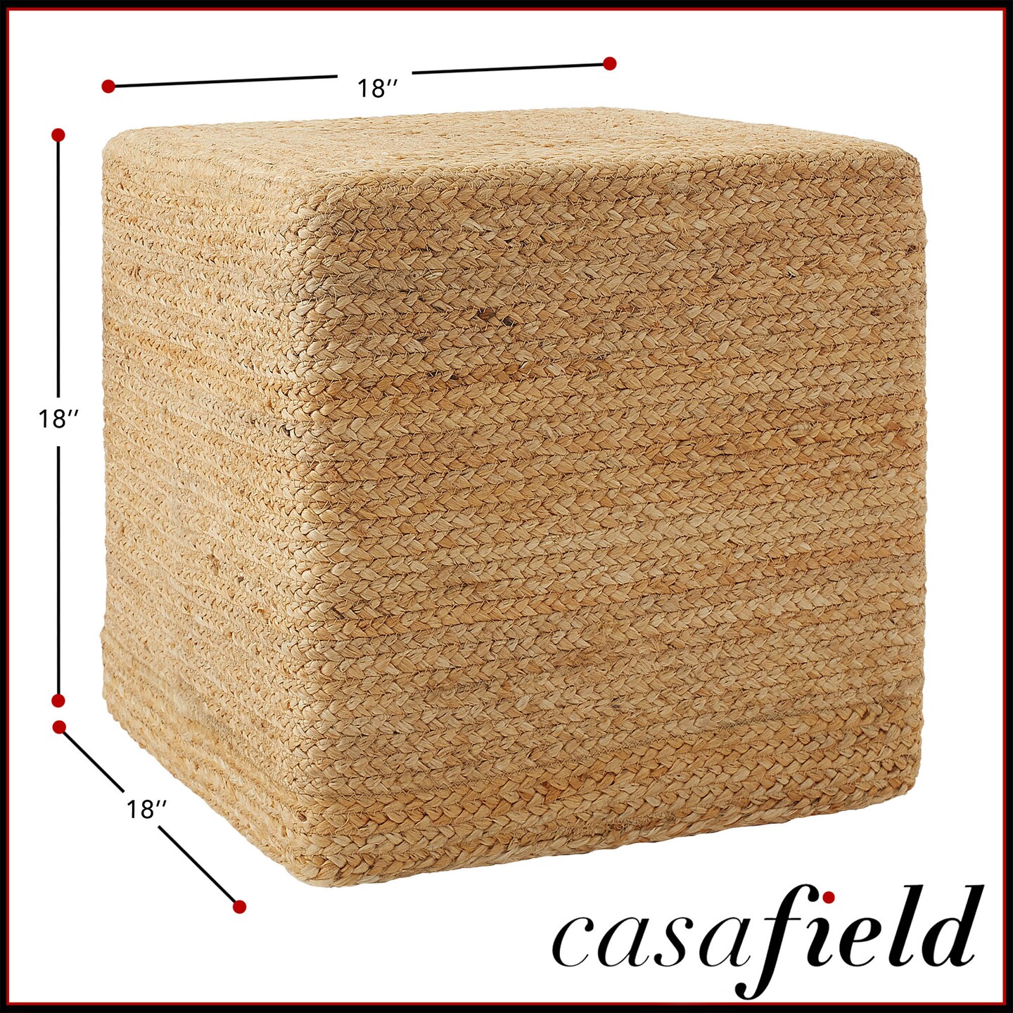 Casafield Hand-Braided Jute Pouf Ottoman Footrest, Natural Woven Boho Floor Cushion, Indoor Home Decor for Living Room, Bedroom, Entryway, Apartment