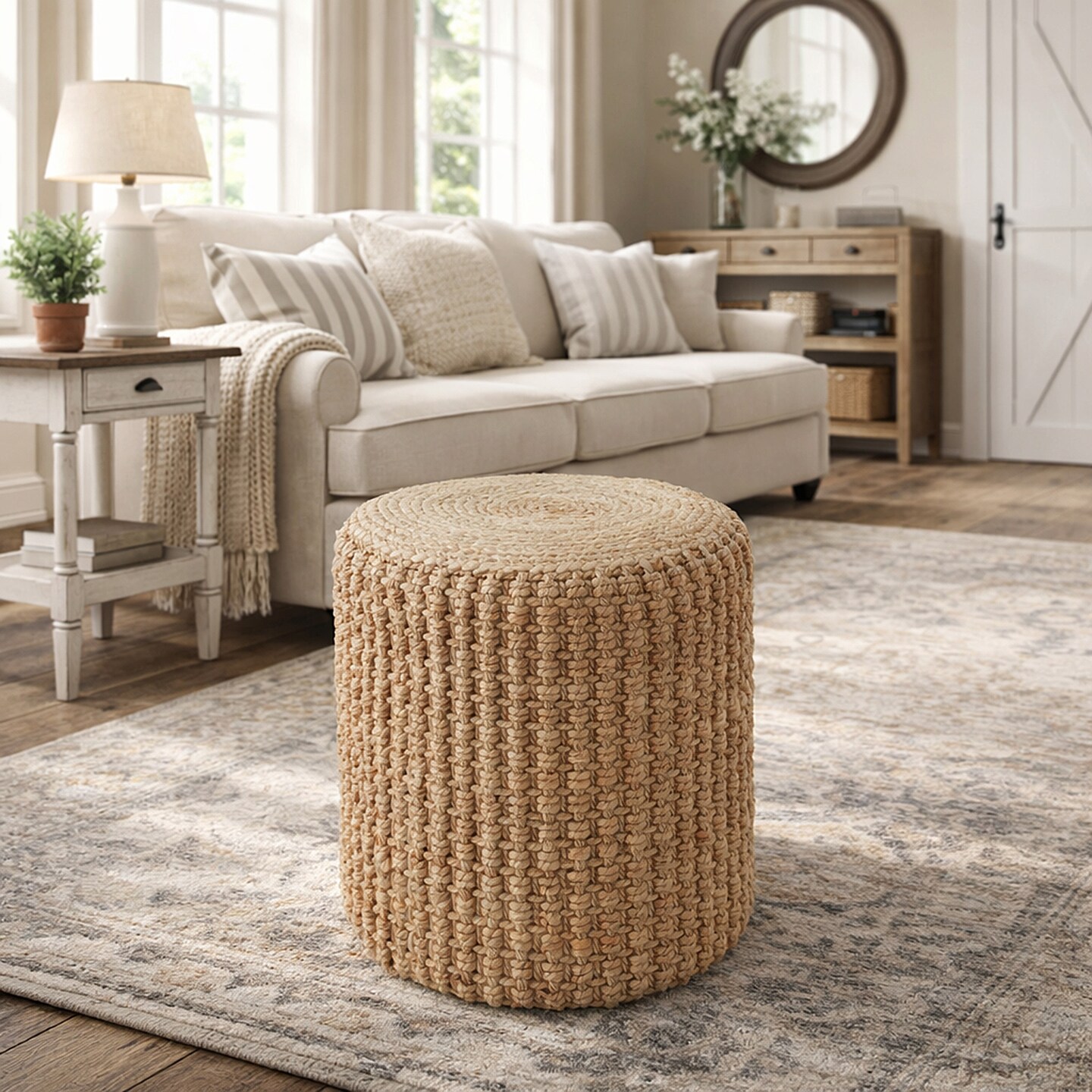 Casafield Handwoven Pouf Ottoman Footrest, Woven Seagrass Ottoman, Decorative Indoor Boho Home Accent for Living Room
