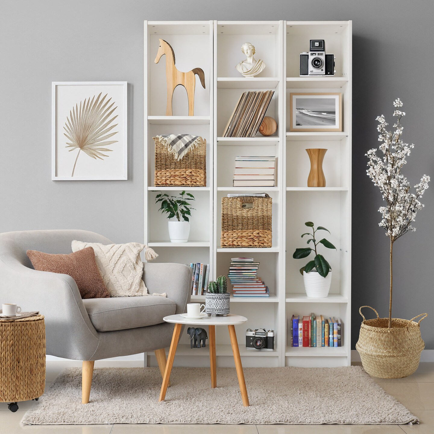 Casafield Mixed Weave Storage Basket Sets, Natural Woven Hyacinth Seagrass Wicker Storage Cube Bins for Bathroom, Bedroom, Laundry, Pantry, Shelves