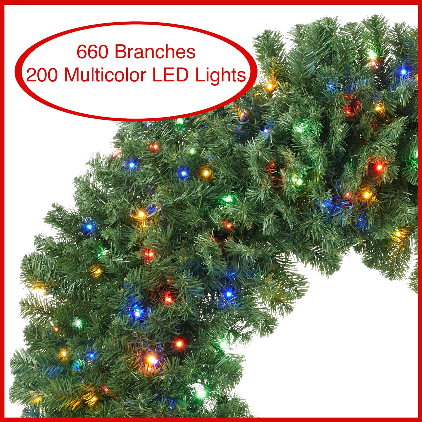 Casafield Pre-Lit Artificial Christmas Wreath for Front Door, Window or Mantel, Green Fir with Multicolor Lights Indoor/Outdoor Holiday Decor, 48 Inches