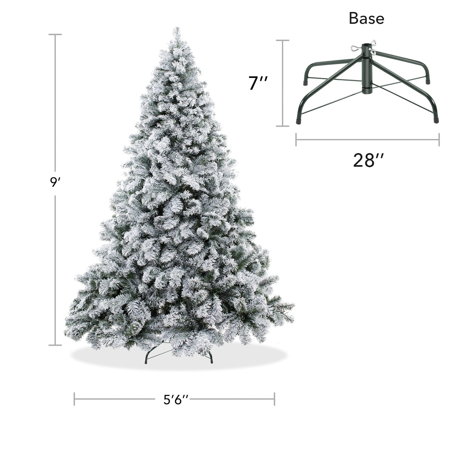 Casafield Realistic Snow-Flocked Pine Artificial Holiday Christmas Tree with Sturdy Metal Stand
