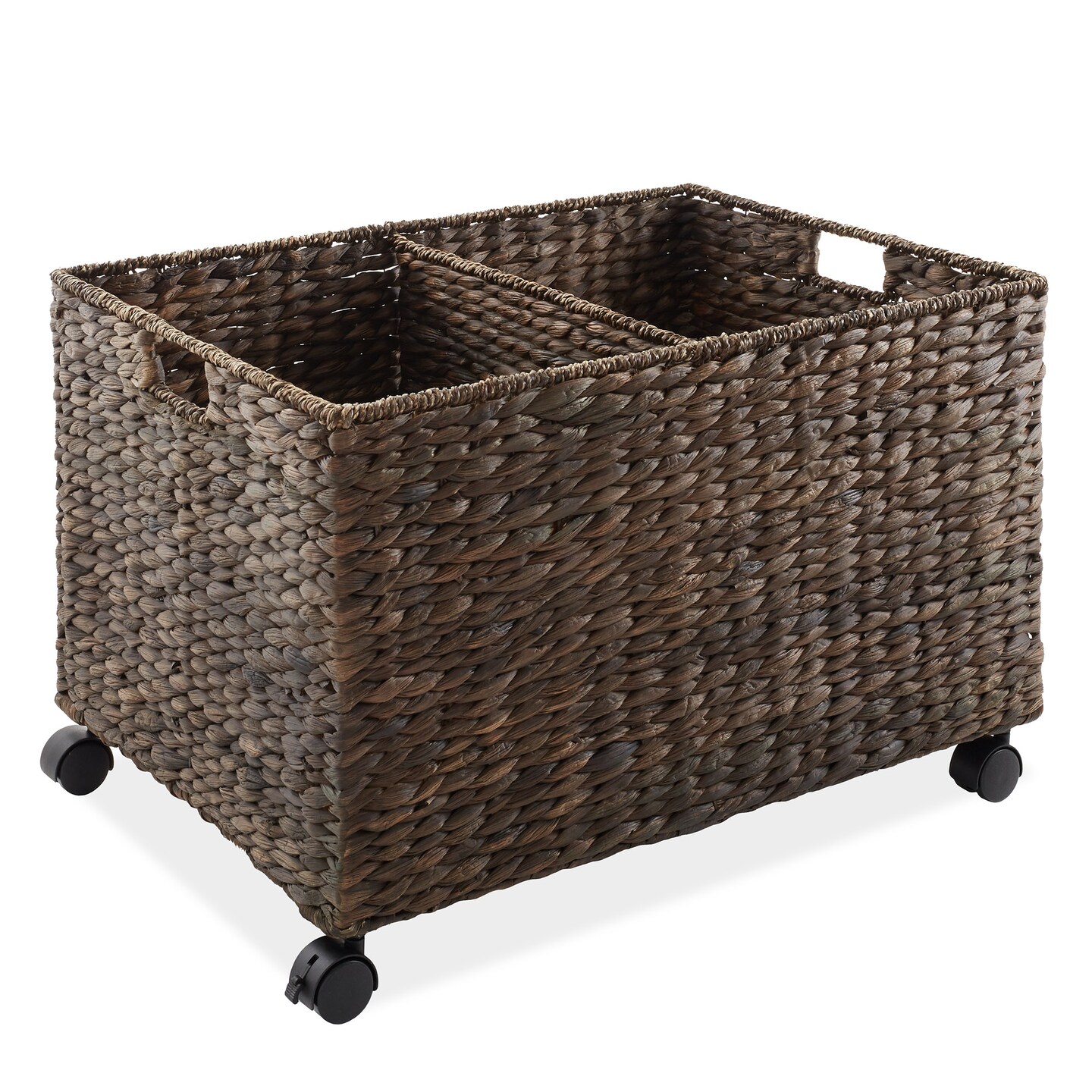 Casafield Rolling Storage Basket Cart with Lid and Locking Wheels - Handwoven Water Hyacinth Divided Recycling Sorting Bin for Kitchen, Laundry Room, Garage