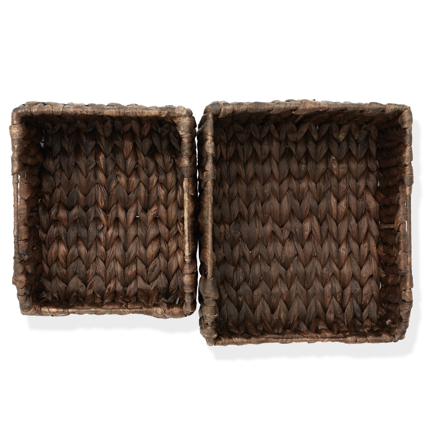 Casafield Set of 2 Water Hyacinth Pantry Baskets with Handles, Woven Storage Bin Organizers for Kitchen Shelves, Medium and Large Sizes