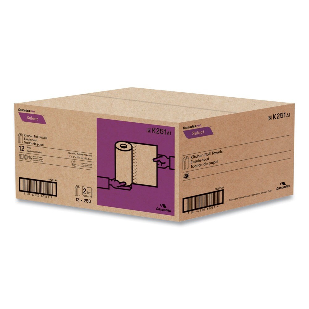 Cascades PRO 11 in. x 166.6 ft. 2-Ply Select Kitchen Roll Towels - Natural (12/Carton)