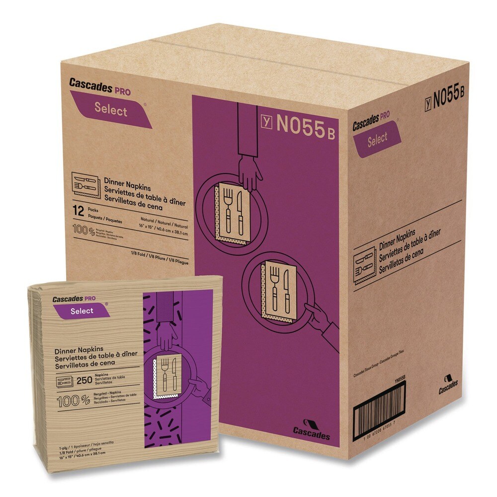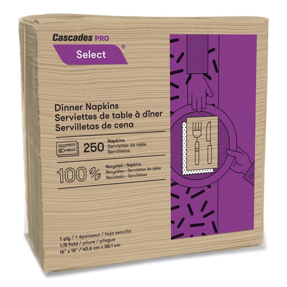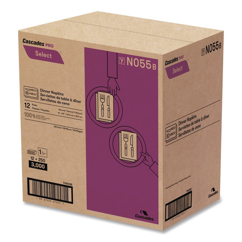 Cascades PRO 16 in. x 15.5 in. 1-Ply Select Dinner Napkins - Natural (12 Packs/Carton)