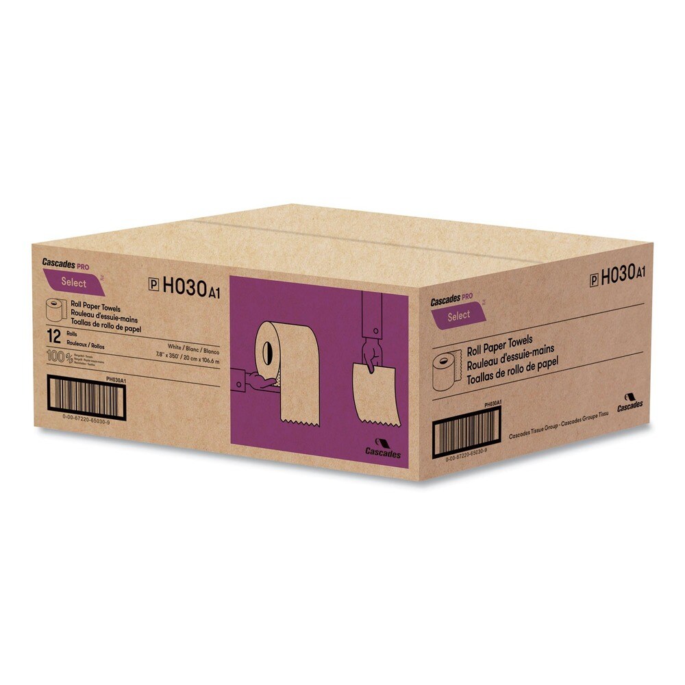 Cascades PRO 7.88 in. x 350 ft. 1-Ply Select Roll Paper Towels - White (12 Rolls/Carton)