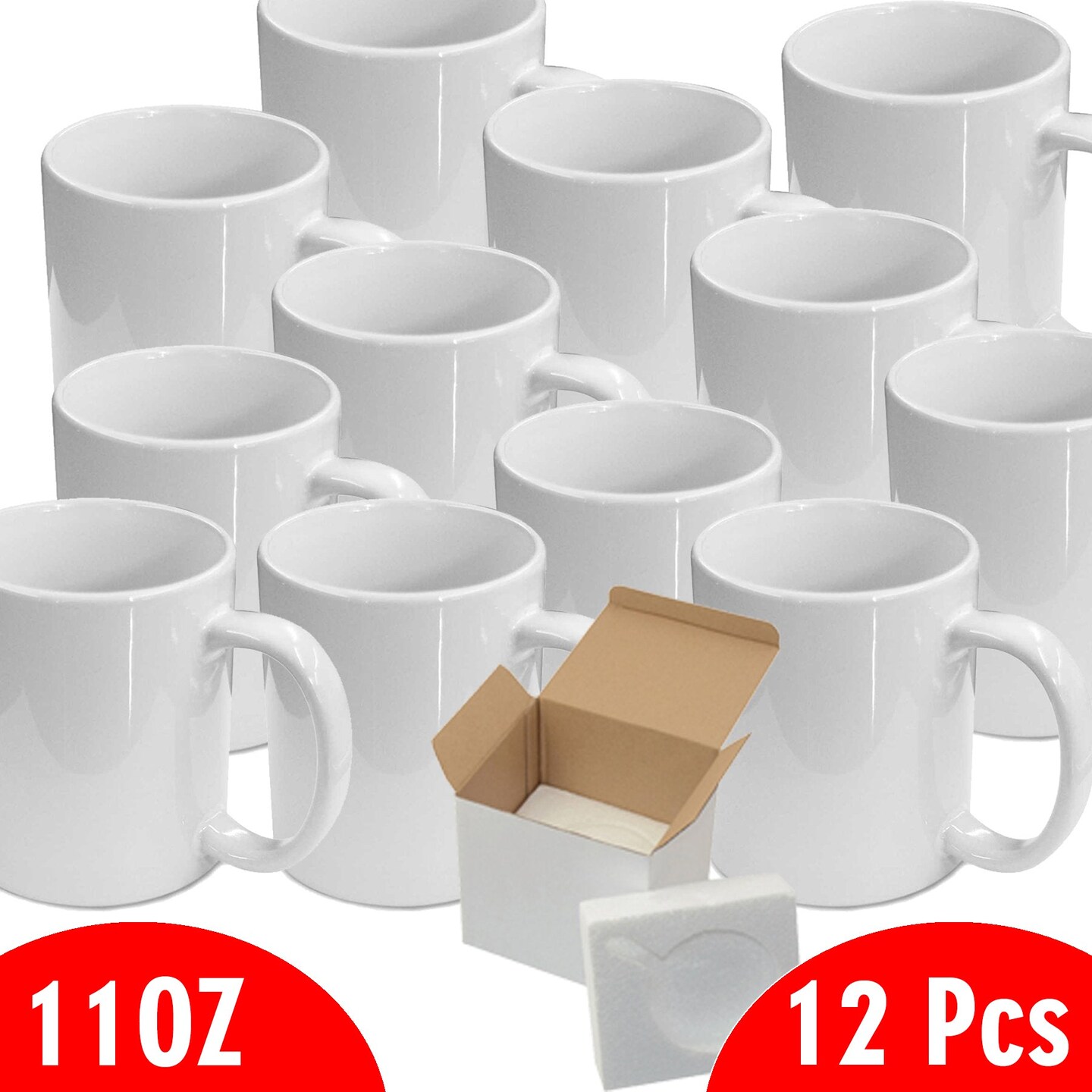 Case of 12 11oz Sublimation Mugs With Gift Mug Box. Mugs - Cardboard Box with Foam Supports