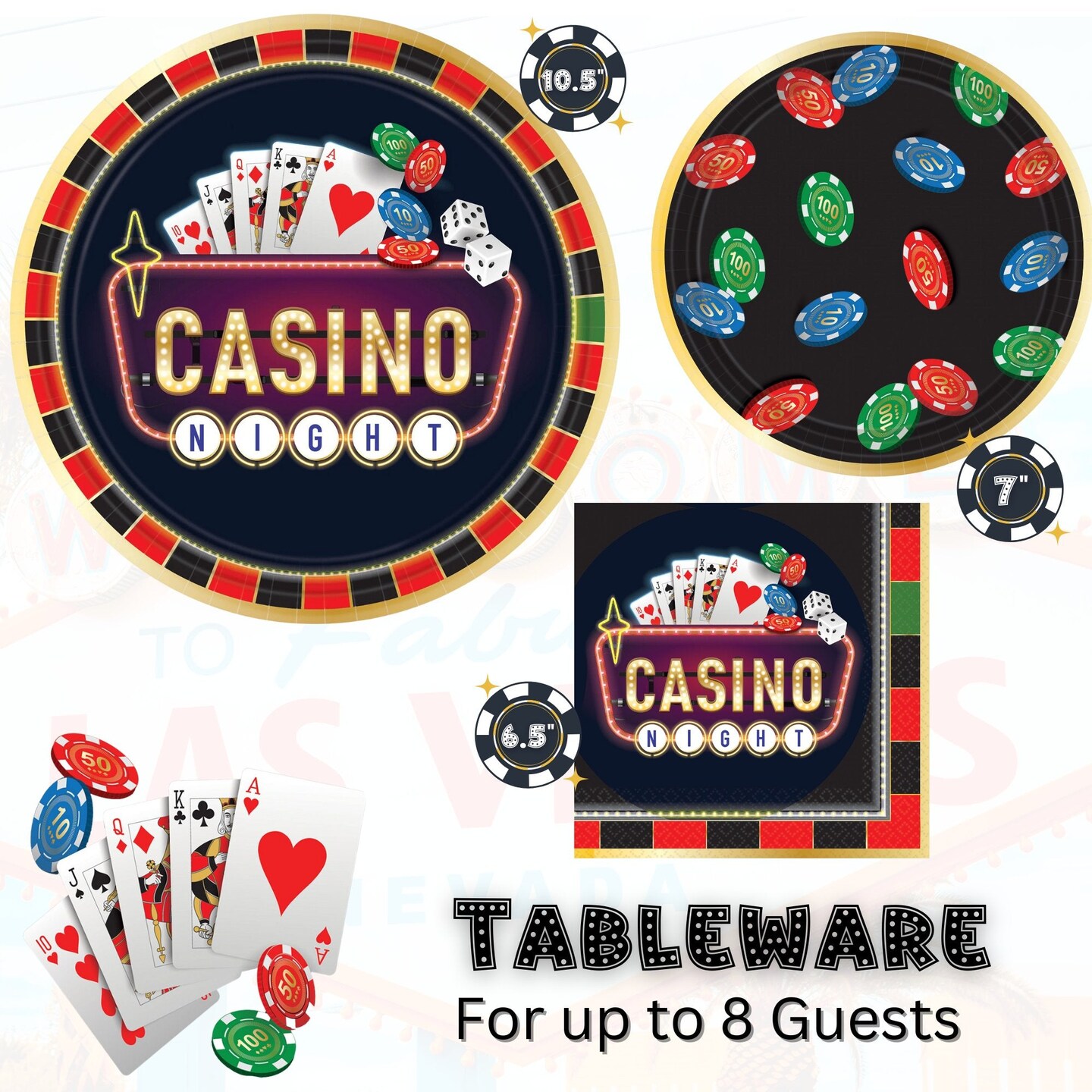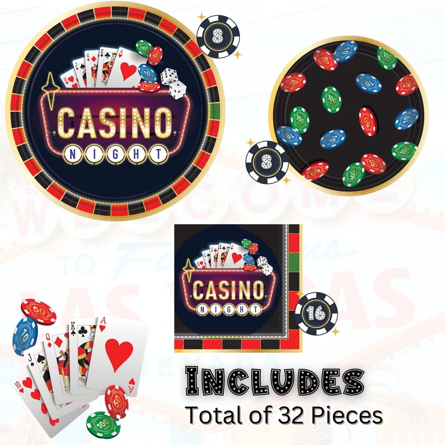 Casino Night Party Supplies Bundle, 10.5" Paper Dinner Plates, 7" Paper Appetizer Plates, and Luncheon Napkins, Serves 8