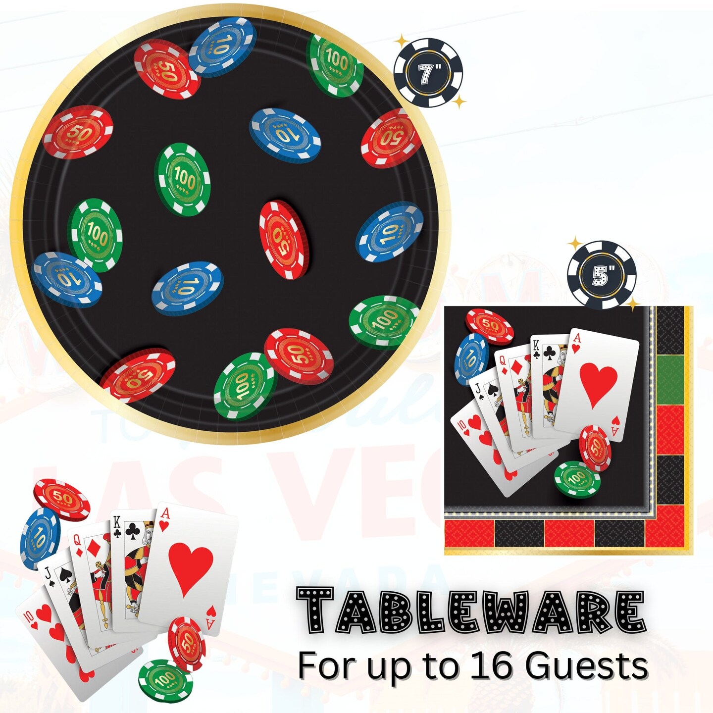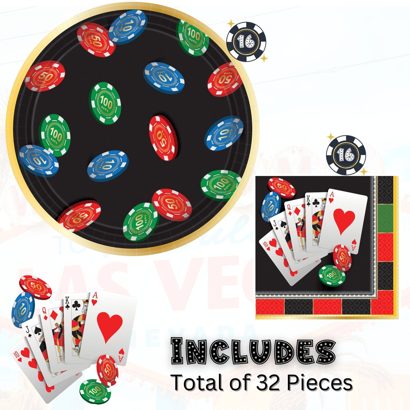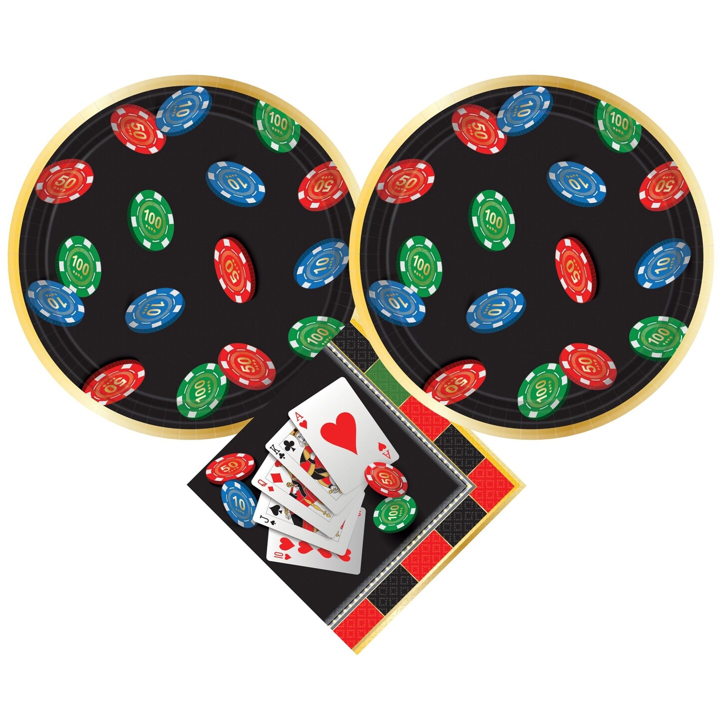 Casino Night Party Supplies Bundle, 7" Paper Appetizer Plates and Beverage Napkins, Serves 16