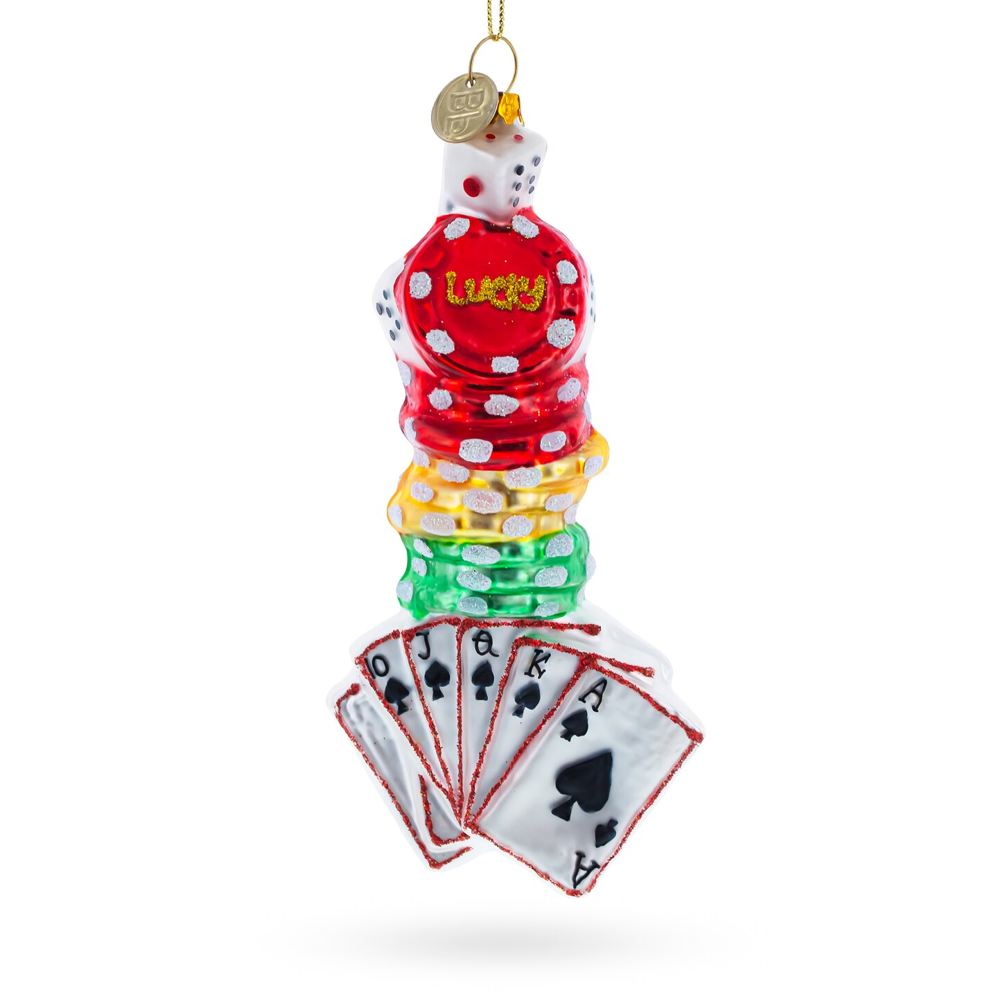 Casino Poker Chips and Cards Glass Christmas Ornament