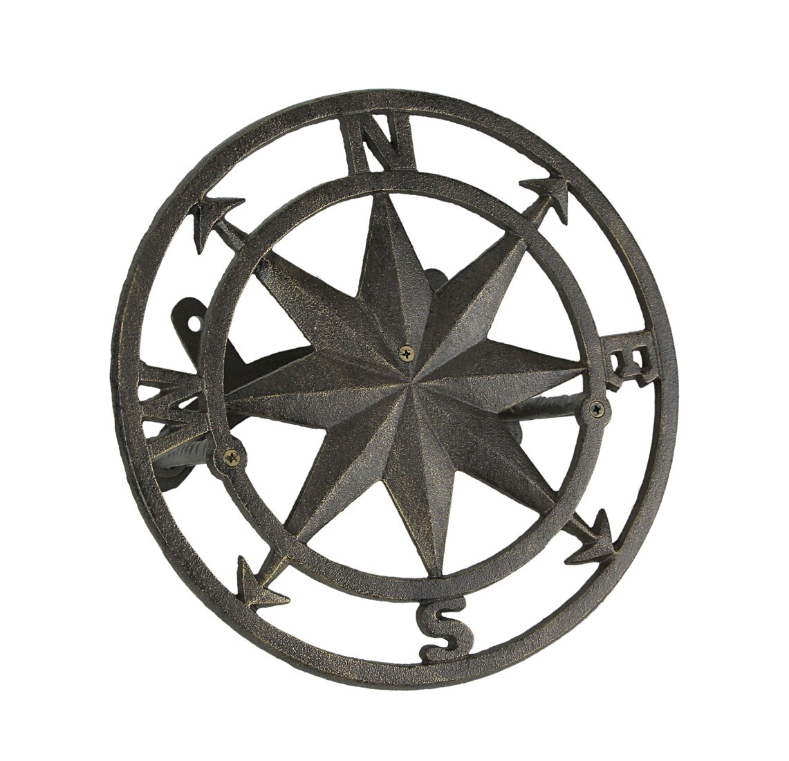Cast Iron Compass Rose Wall Mounted Decorative Hanging Garden Hose Holder Bronze