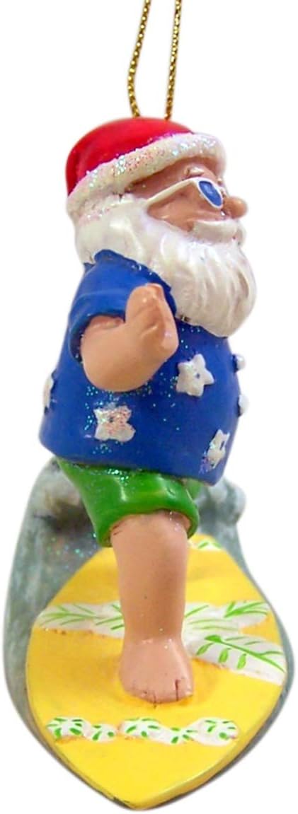 Cast Resin Painted Surfing Santa Claus Hanging Ornament, 3 1/2 Inch