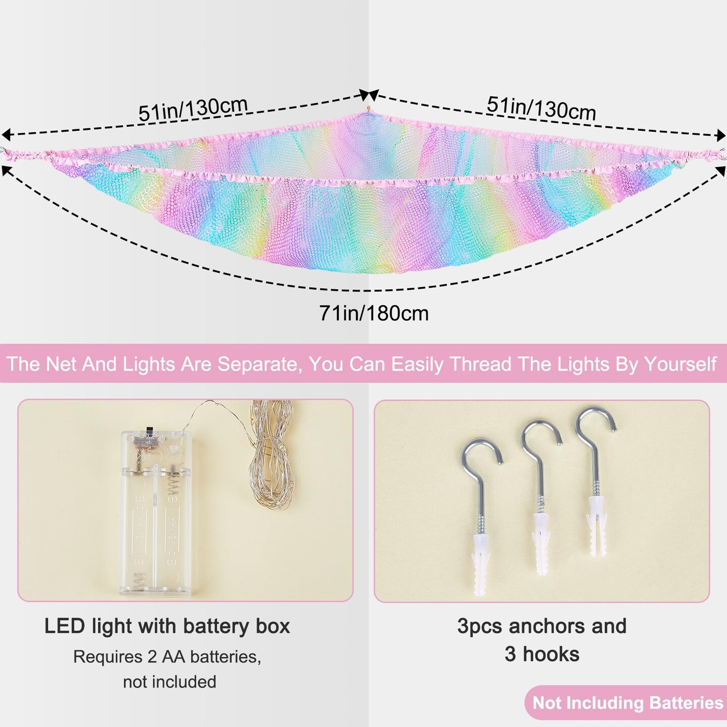 Castle Stuffed Animals Net or Hammock Kids Toy Storage Organizer with LED Light Hanging Corner Stuffed Animals Holder Kids Girls Room Decor(Pack of 1)