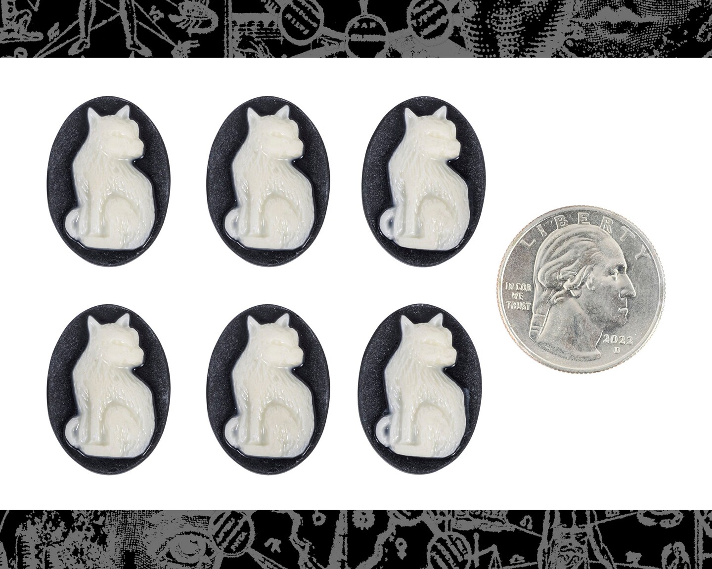 Cat Cameos White Cat on Black 24mm x 18mm Resin Cameos - Set of Six - CAM305