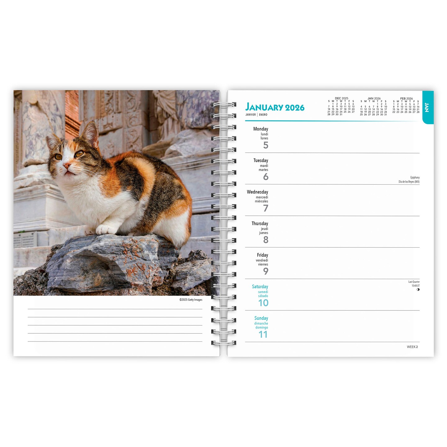 Cat Lovers | 2026 6x7.75 Inch Spiral-Bound Wire-O Weekly Engagement Planner Calendar | New Full-Color Image Every Week