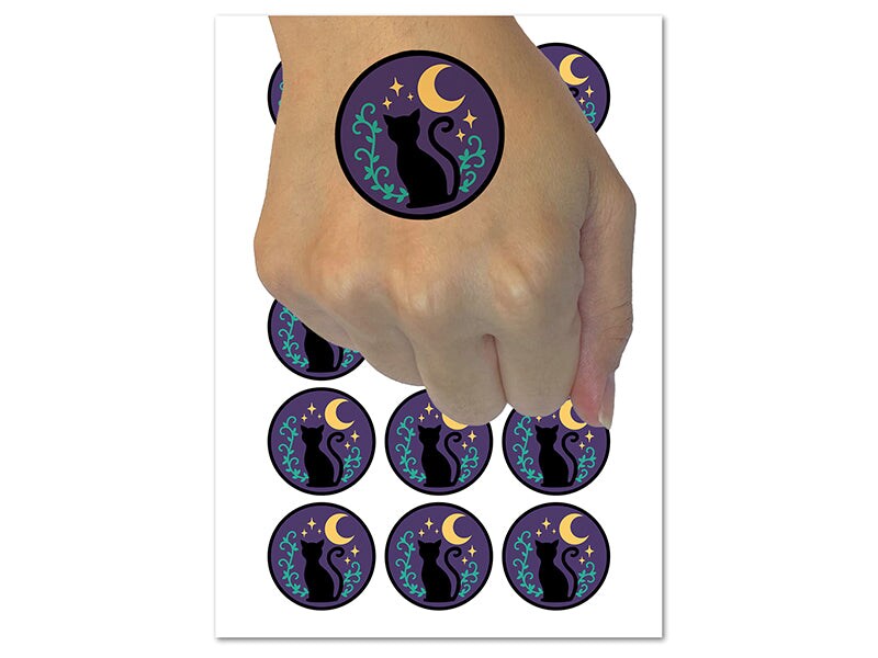 Cat Moon Stars Temporary Tattoo Water Resistant Fake Body Art Set Collection (1 Sheet)