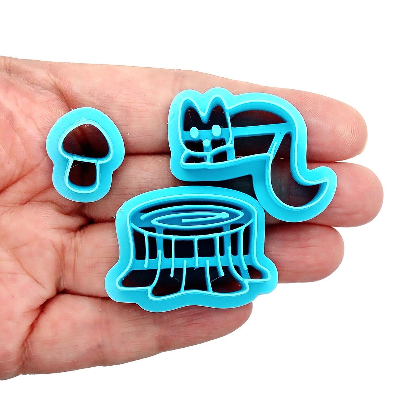 Cat on Tree Stump with Mushroom, 3 pc Clay Cutter Set, Adorabilities