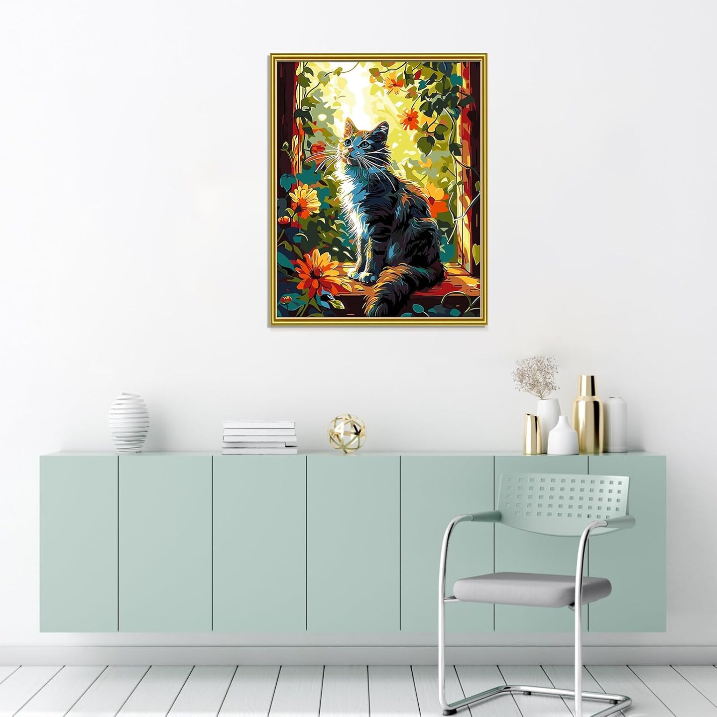 Cat Paint by Numbers Kit for Adults – DIY Floral Window Cat Painting on Canvas, Beginner-Friendly Animal Paint-by-Number Set for Relaxation, Gifts & Home Decor, 16x20 Inch