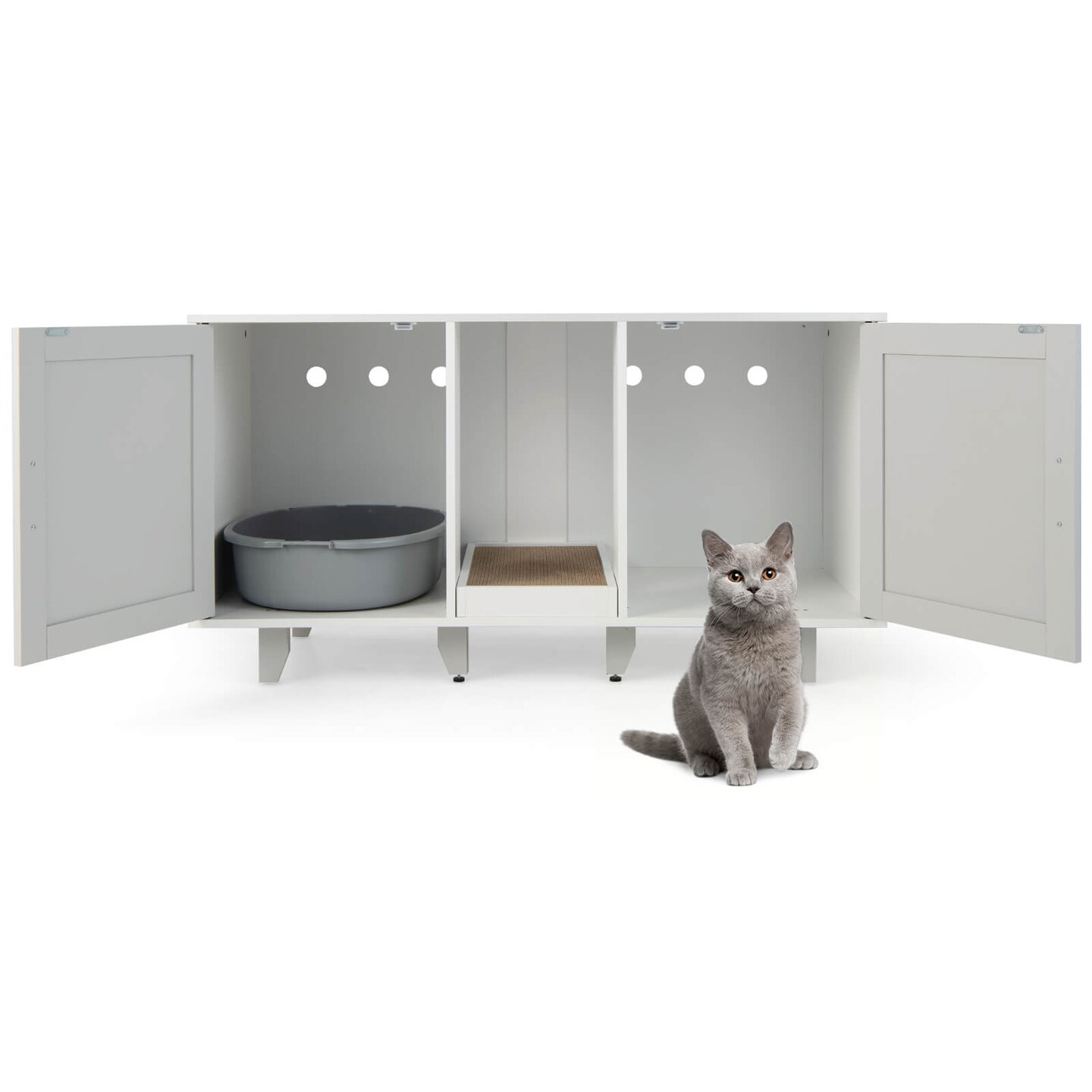 Cat Washroom Litter Box Enclosure with Maze Entry and Scratch Board
